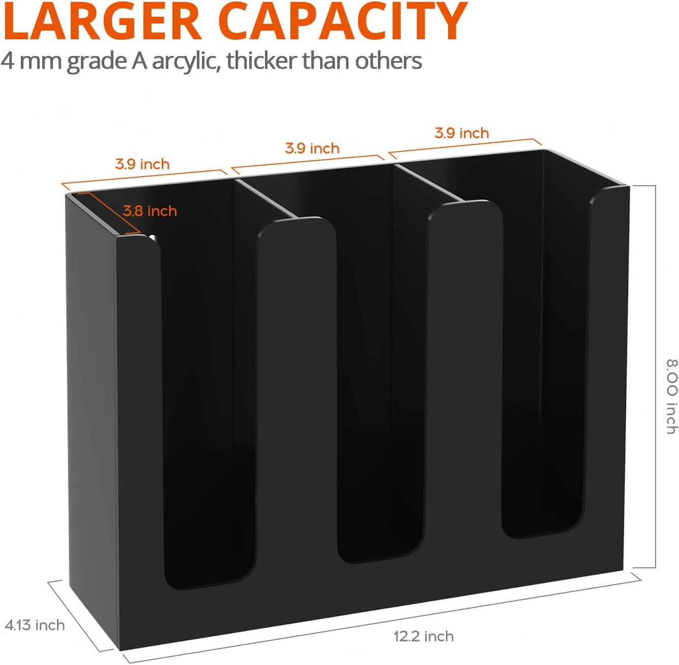 Richboom Acrylic Coffee Cup and Lid Storage Organizer Holder, 3 Compartments, Black