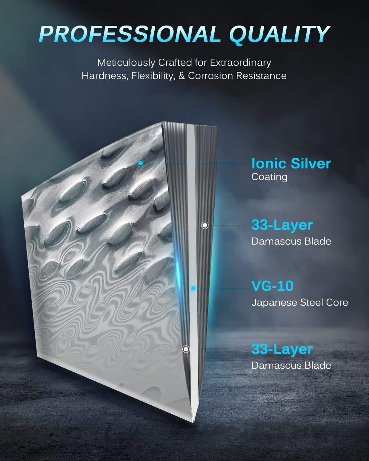 - INNOVATIVE PROTECTION: Our blade boasts a protective silver ion coating to prevent growth of unwanted contaminants for extra culinary safety; the provided sheath and case allow you to preserve your knife with care