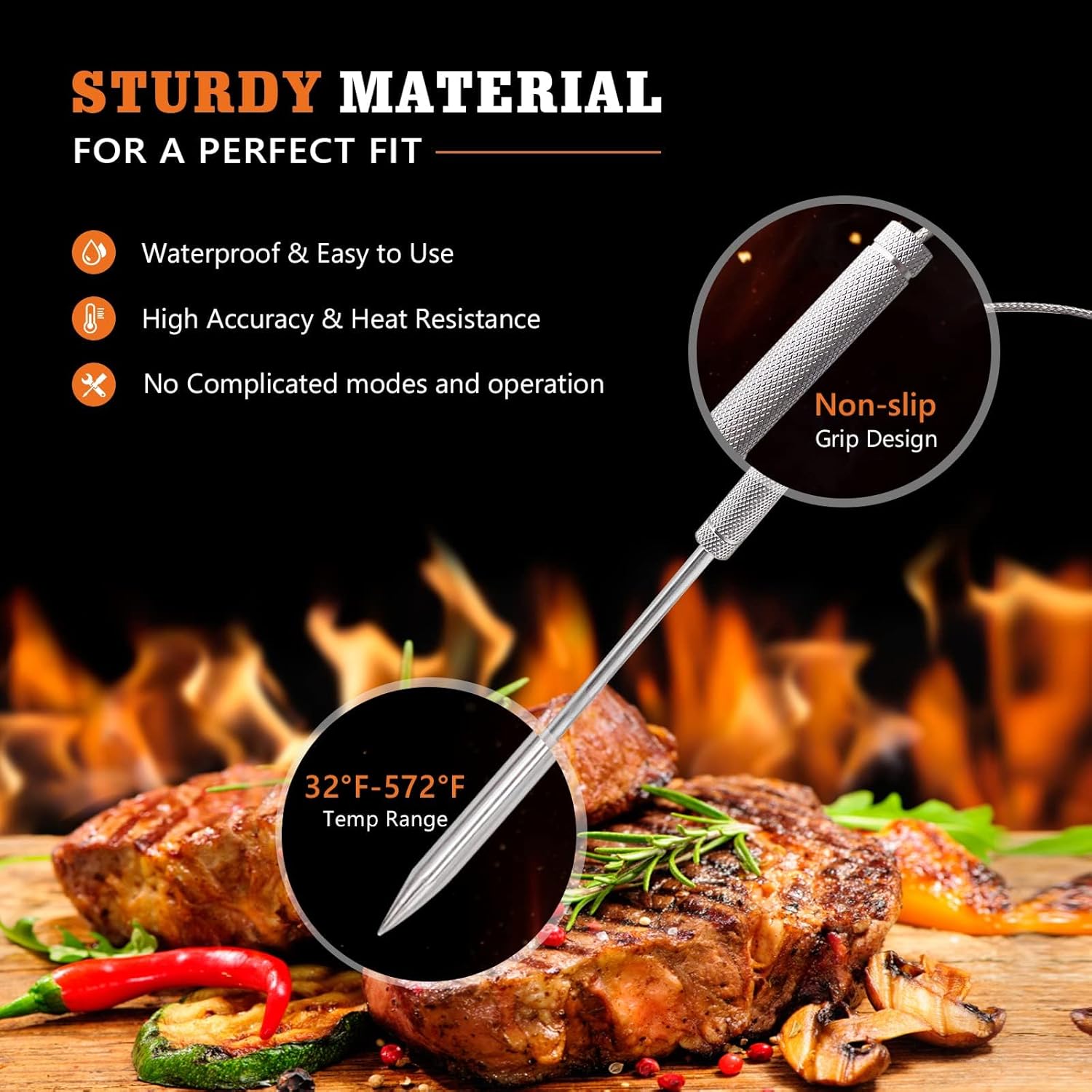 - GREAT MEAT PROBE: Upgraded food-grade long probes make it easier to measure food, This meat probe replacement with 42" woven steel mesh probe wire. The temperature probe will help you monitor the temperature of your food
