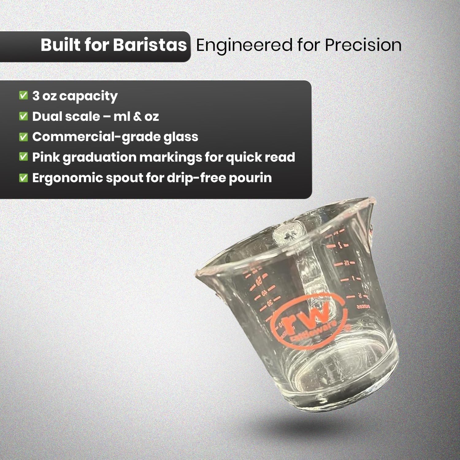 - 𝐃𝐔𝐑𝐀𝐁𝐋𝐄 𝐁𝐀𝐑𝐈𝐒𝐓𝐀-𝐐𝐔𝐀𝐋𝐈𝐓𝐘 𝐆𝐋𝐀𝐒𝐒: Built for everyday use in cafes or home kitchens, this espresso shot measuring cup withstands heat and frequent washing. A reliable glass measuring cup designed for long-lasting use.