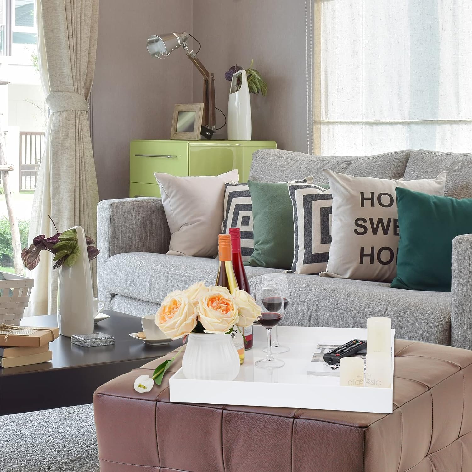- Multi-purpose: Elegant Square ottoman tray with safe rounded edge, It’s just the right size tray to put on your rectangular or square ottoman, The tray can be placed in multiple areas also, Dinning room kitchen、Coffee table, It also can be used as vanity trays