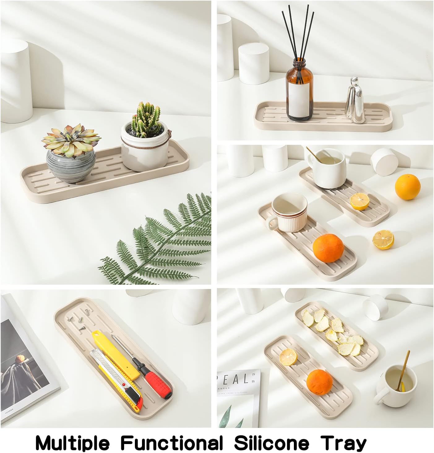 - RAISED EDGE & NON-SLIP BOTTOM:The non-slip bottom design can make the silicone organizer tray stable on the sink or countertop.The 0.67-inch high raised edge keeps water or other dirt overflow to keep your counter clean.