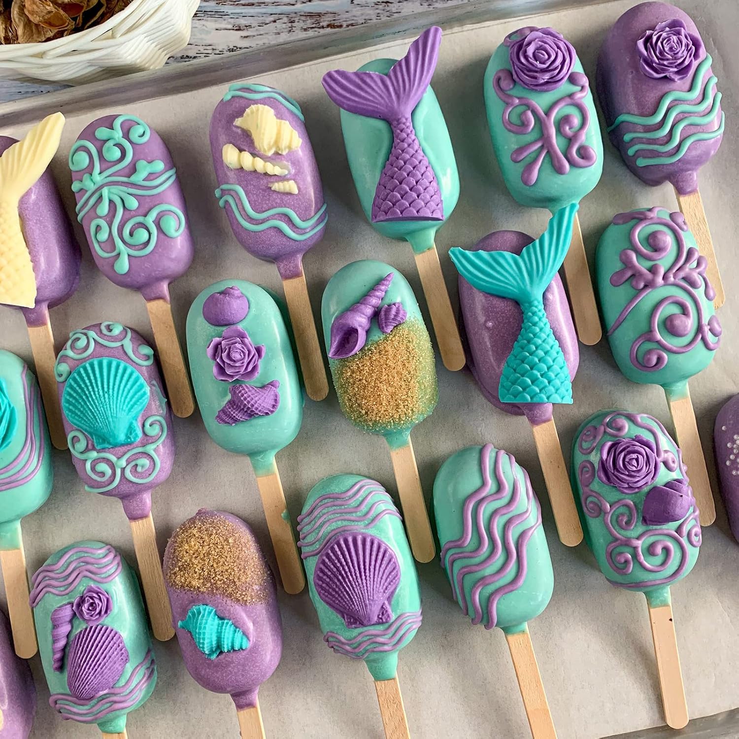 - 🐟Great set for our mermaid themed party! Once they are removed from the mold though - they are pretty solid. The mermaid tail seashells seahorse look amazing. You sprayed them with color mist and they look almost real!