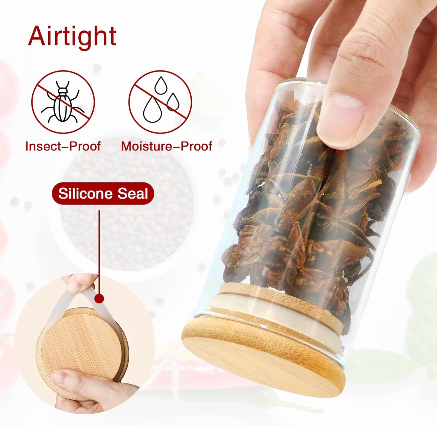 - 【Airtight Spice Jars】Twist the lid for a satisfying "pop"—spices stay fresh. Seasoning jars with labels seal tight via food-safe silicone ring, while empty airtight glass spice jars with labels and lids lock out moisture/air, keeping every pinch vibrant.