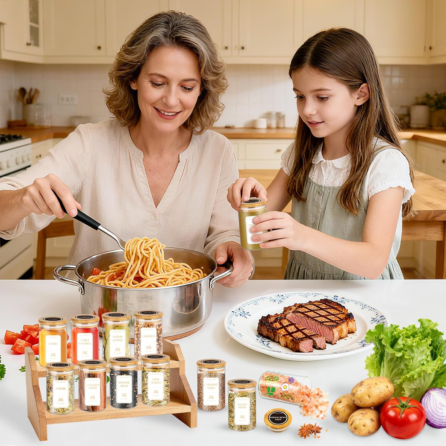 - 【Cute Bamboo Spice Jars Set】Get 35 durable 4 oz seasoning jars with 426 waterproof labels, a funnel, spoon, brush, and 2 pens. These small spice storage containers with labels and lids aren’t just containers—they’re tiny stylists, turning clutter into tidy charm.