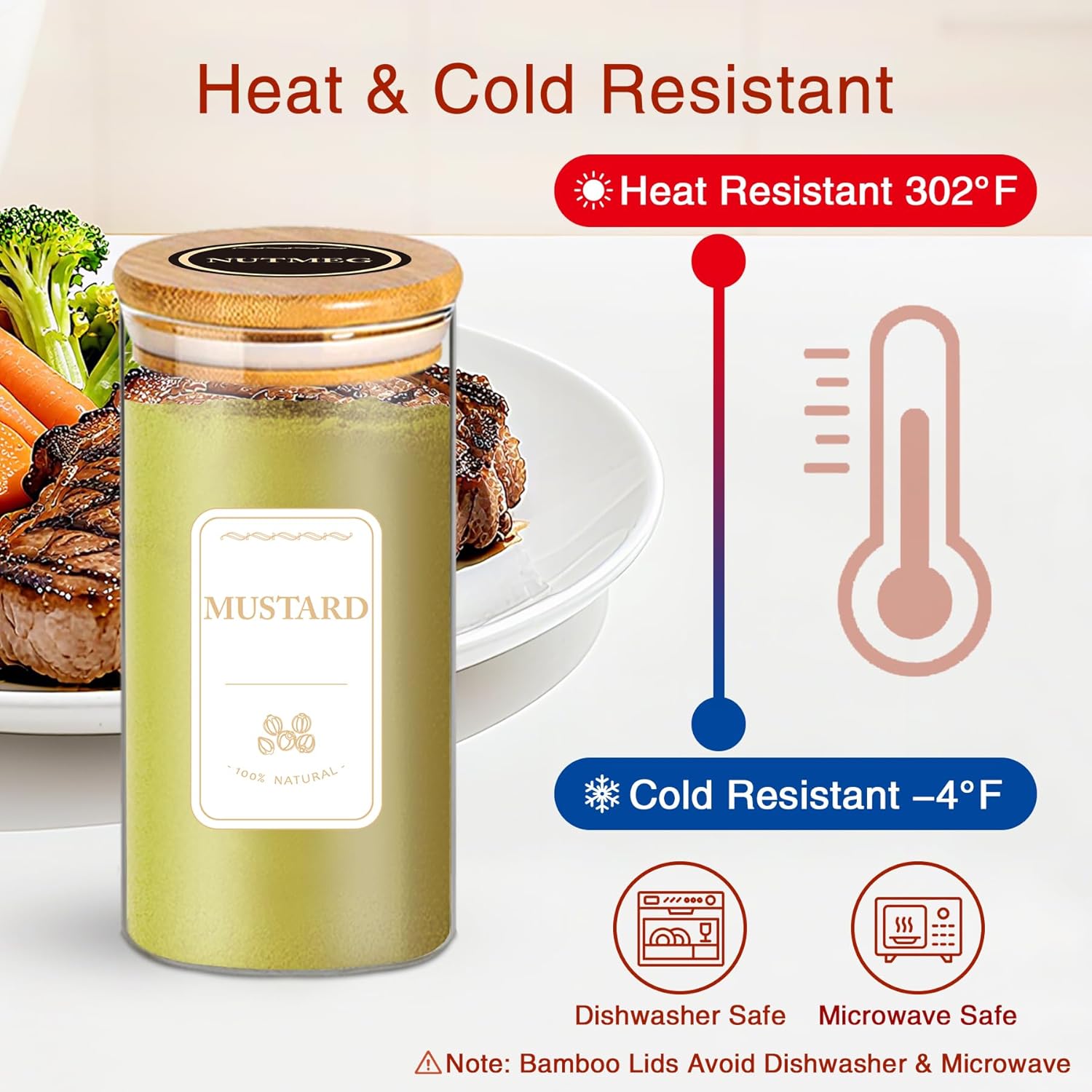 - 【Premium Clarity Glass Seasoning Containers】6 oz glass spice jars with bamboo lids offer crystal-clear visibility, making spice ID easy. Ultra-transparent borosilicate small spice storage containers with labels and lids take the guesswork out of finding favorites.