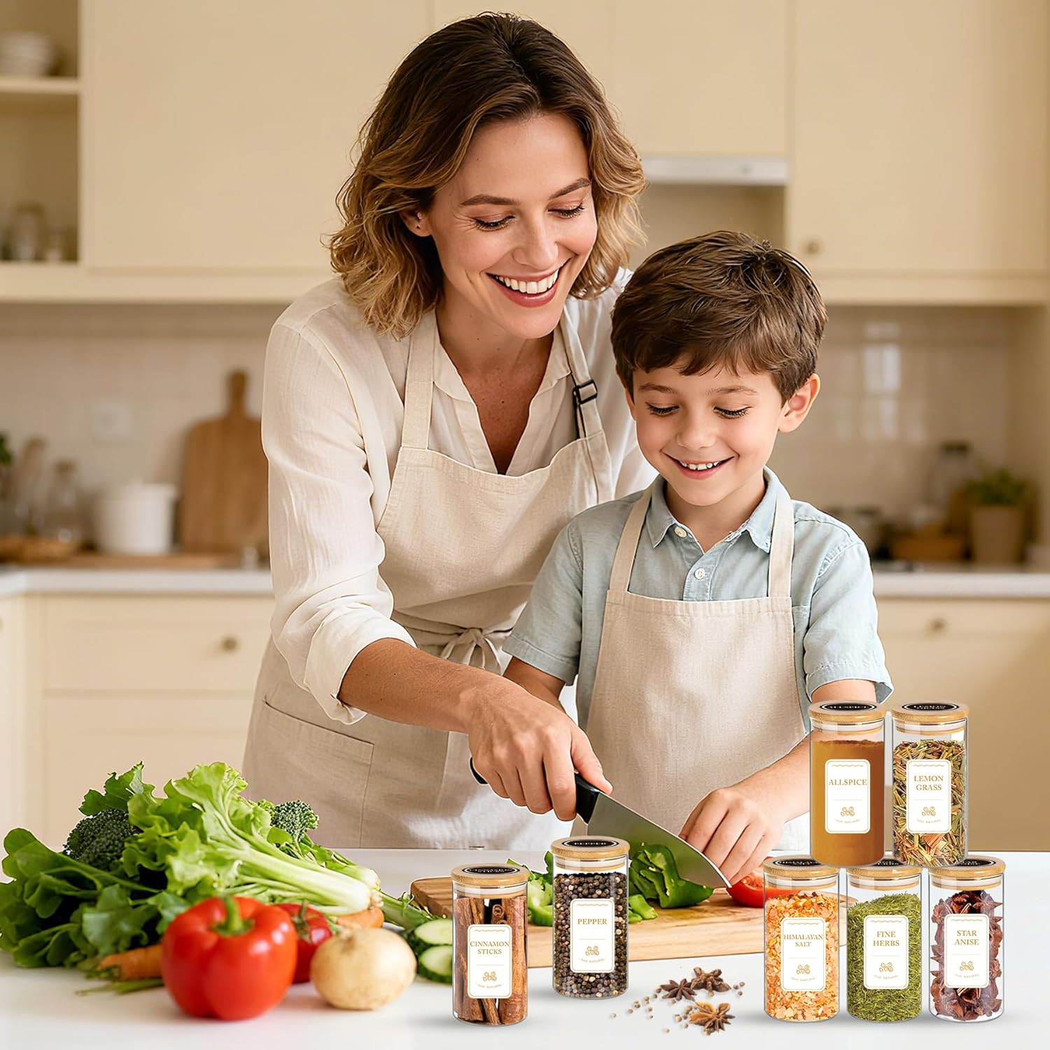 - 【Ultra-Durable Herb Jars】Crafted from borosilicate glass, these labeled seasoning jars are built to handle daily use with ease. These herb containers are sturdy enough to withstand regular handling, serving as reliable partners—ideal as glass seasoning containers.