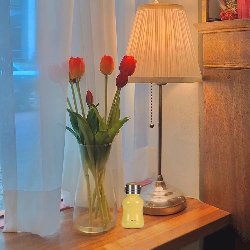 YOHKOH Mini Vacuum Insulated Water Bottle With Bamboo Lid - Stainless Steel Thermos Water Bottle for Women Girls Kids, Metal Sports Hot and Cold Water Bottle Leak-Proof BPA-Free (6.4oz,Yellow)