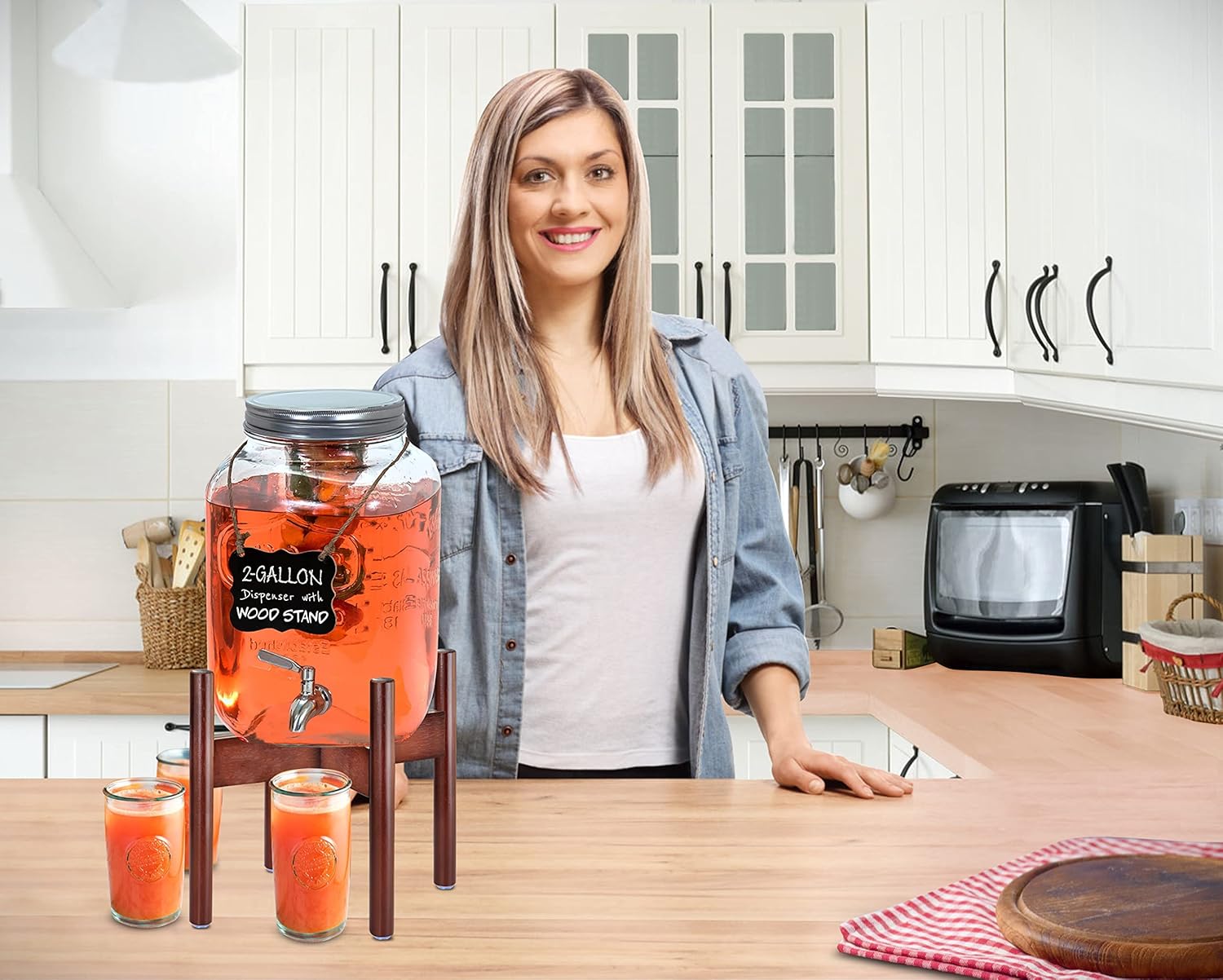 Drink Dispenser Stand - Ideal for Drinks Beverages Water Lemonades and Juices - Adjustable, fits Various Sizes of Glass Plastic and Ceramic Dispensers [1-2 Gallon cap] - Dark Wood