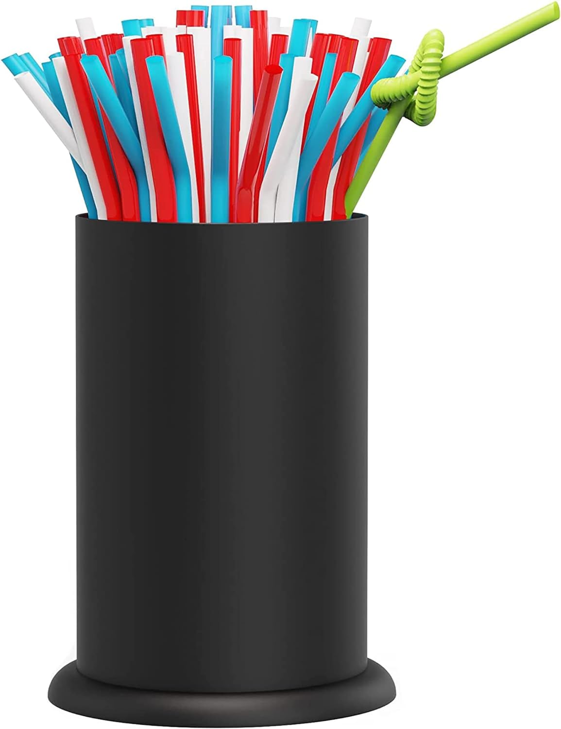 MyLifeUNIT Straw Holder Dispenser, Stainless Steel Kitchen Utensil Organizer 6.7" x 4.9", Black
