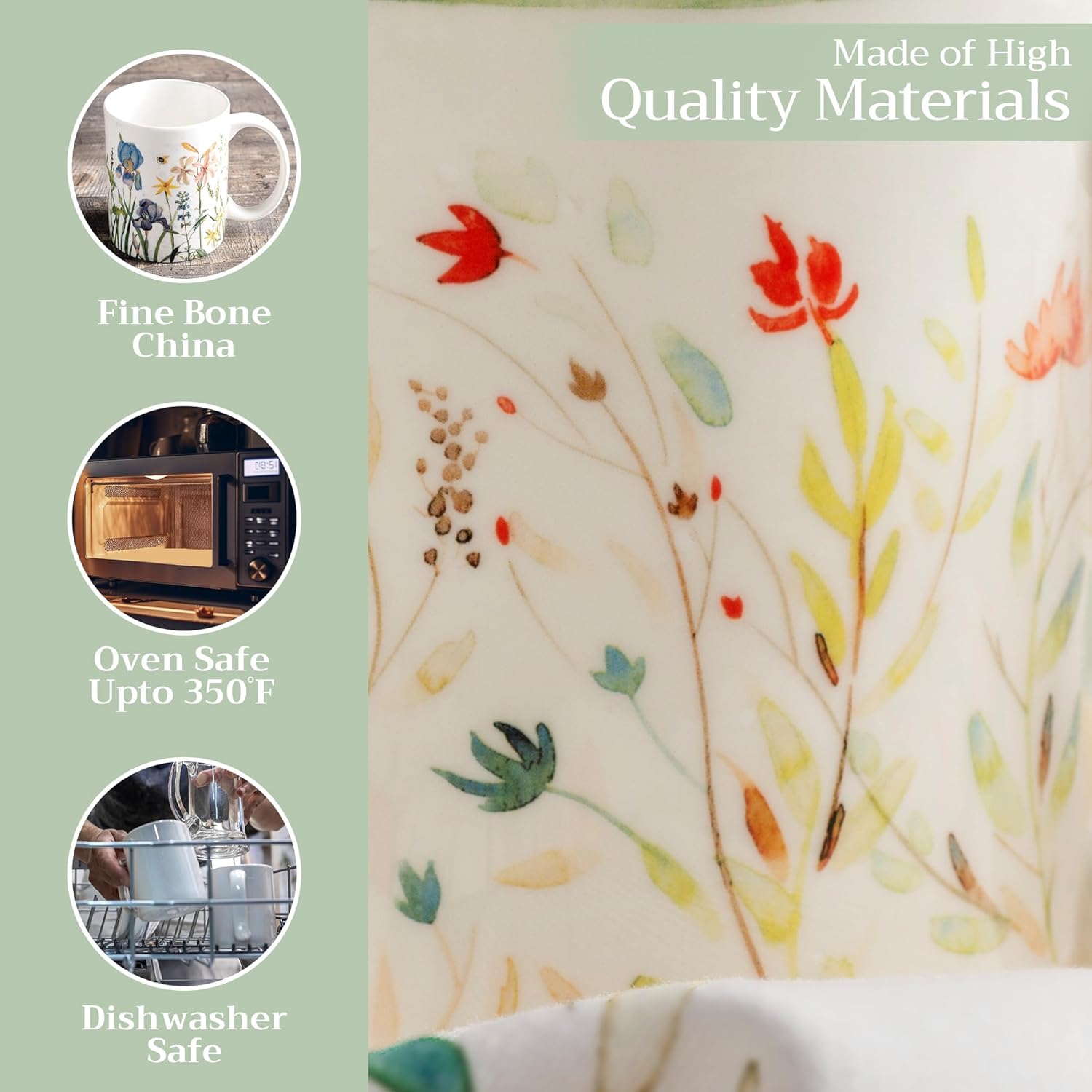 - Easy Care & Maintenance: Microwave, dishwasher, and oven safe up to 350°F. These bone china mugs are built for convenience and durability, making cleanup and reheating simple without compromising on quality