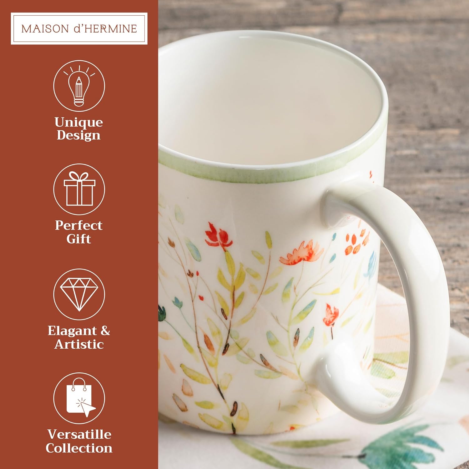 Maison d' Hermine Coffee Mug with Handles Fine Bone China Mugs Pack of One Tea Cups for Hot Beverages Cappuccino Latte Home Restaurant Office Perfect for Gift (Colmar - Green, 15 Ounce)