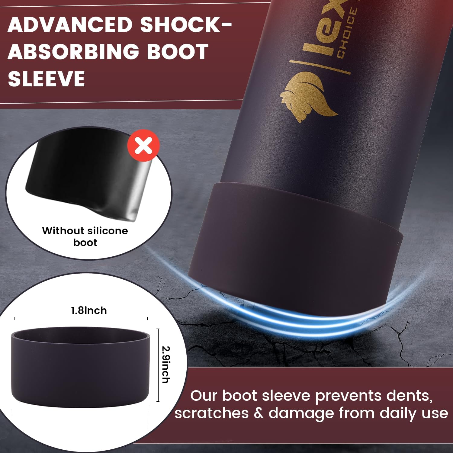 - ✅ SILICON BOOT/SLEEVE- Lexlion 22 oz stainless steel water bottle comes with an advanced shock-absorbing silicone material that helps to protect against dents, dings, scratches, and all the imperfections of your 22 oz insulated water bottle. You are protected against an inevitable drop in your water infuser bottle. This will extend the life of your flask. The infuser water bottle is BPA-free and made of soft and highest-quality material.