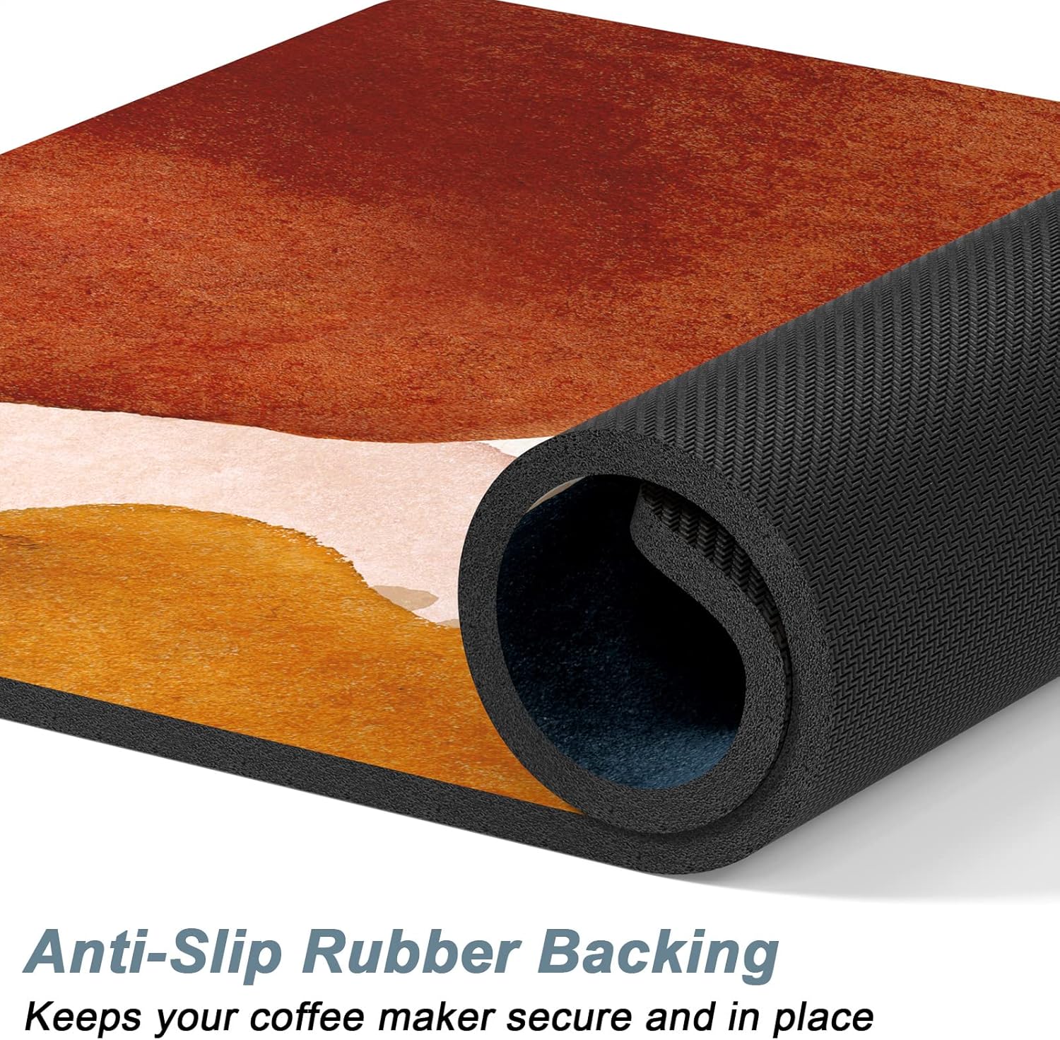 - Super Absorbent and Non-slip: Coffee bar decor mat is crafted from absorbent suede and anti-slip rubber. The surface is soft, heat-proofand and can quickly absorb liquid. The anti-slip rubber backing can firmly grip the floor without unwanted sliding