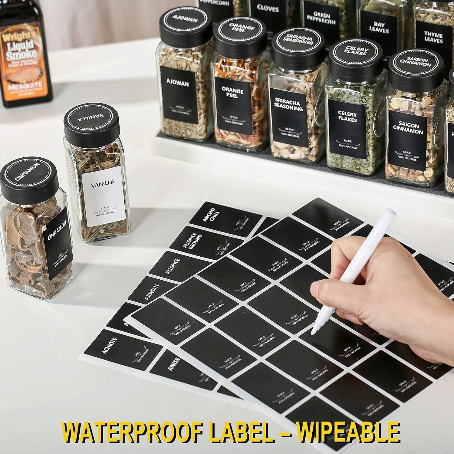 - Seasoning Jars Label Advantages: 3 sets of spice jar labels with the same content can be combined at will, no matter what direction you place the spice bottles in a drawer or cabinet, always have a name label facing you.
