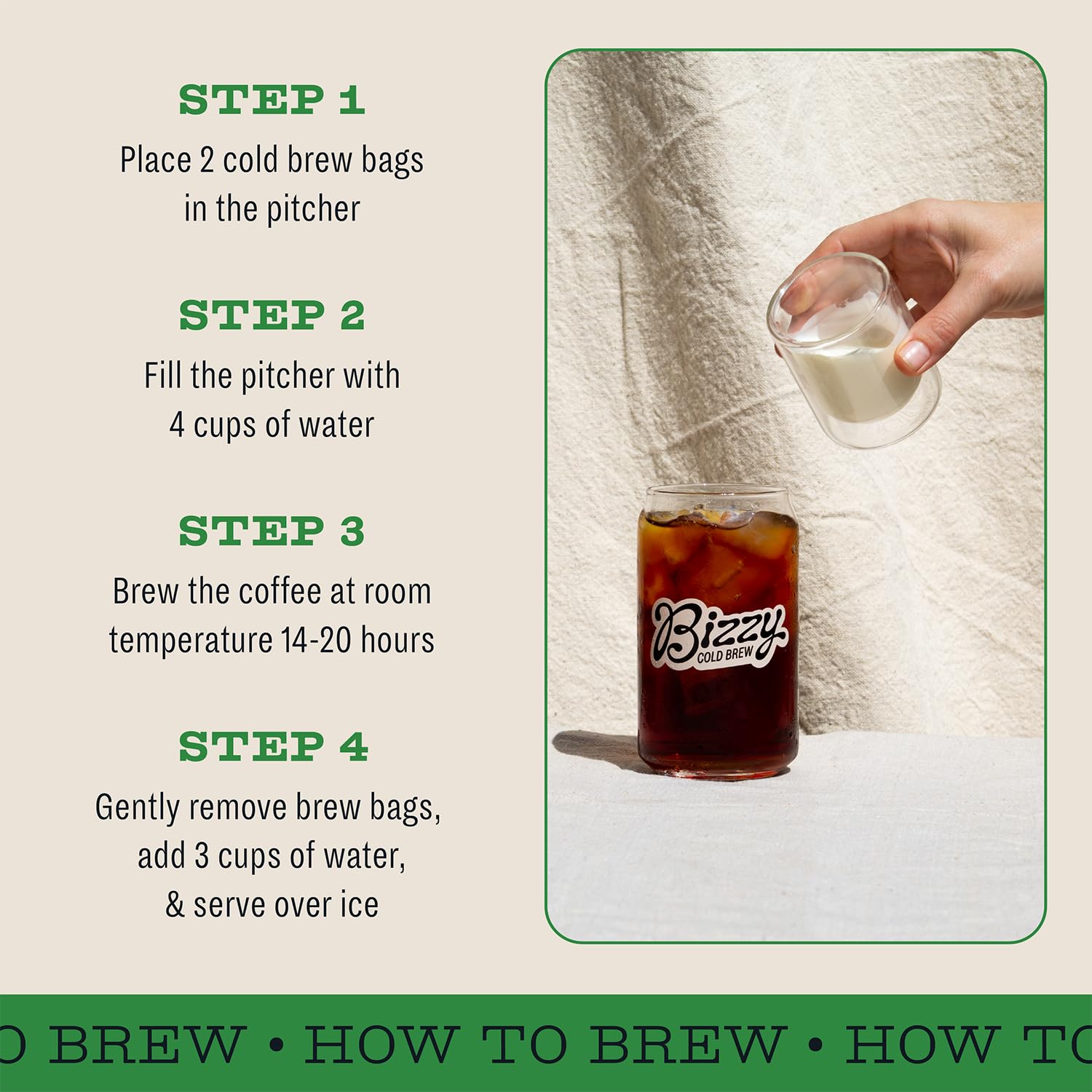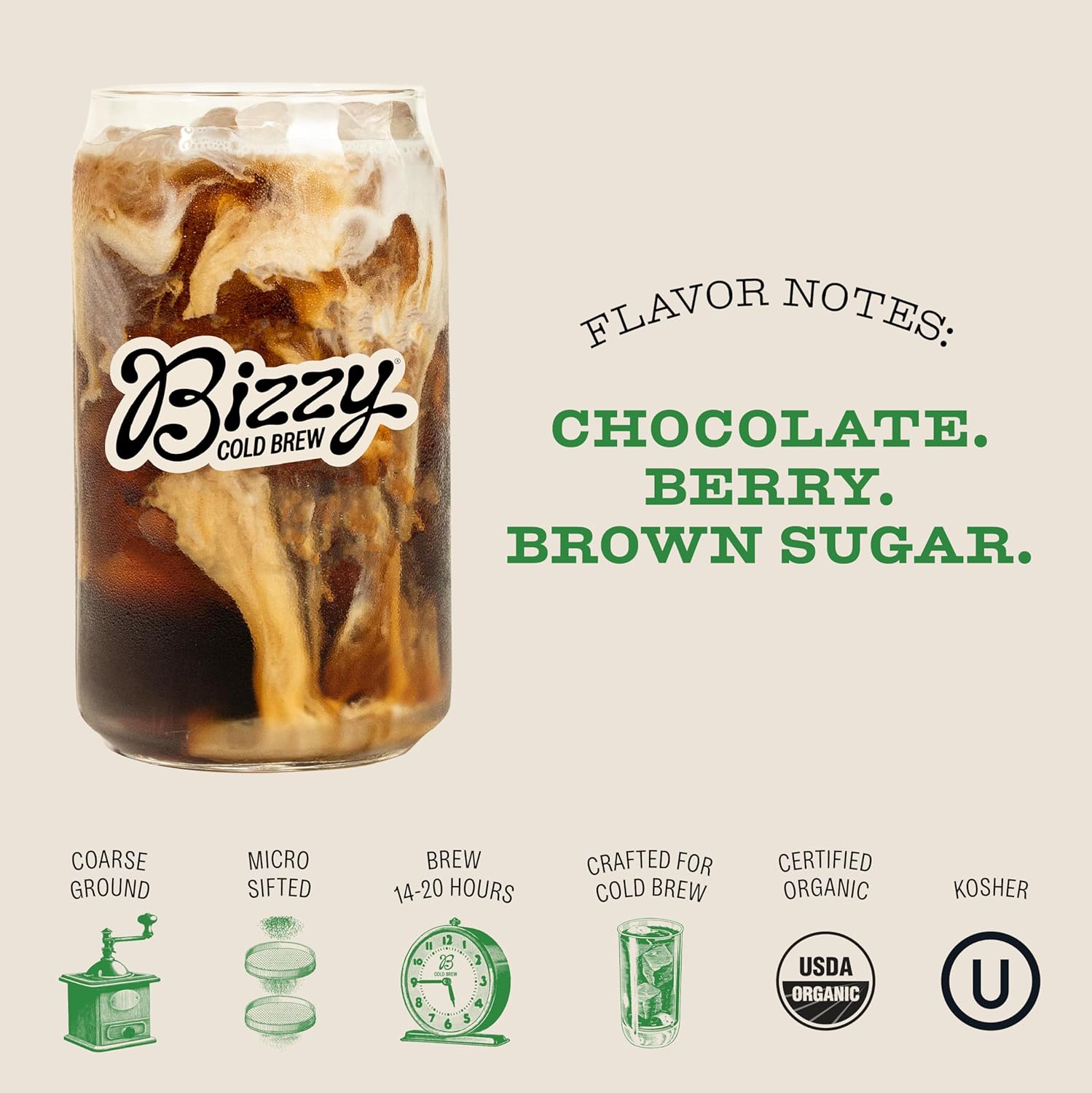 Bizzy Organic Cold Brew Coffee | Espresso Blend | Coarse Ground Coffee | Medium-Dark Roast | Micro Sifted | Specialty Grade | 100% Arabica | Brew Bags | 12 Count | Makes 42 Cups