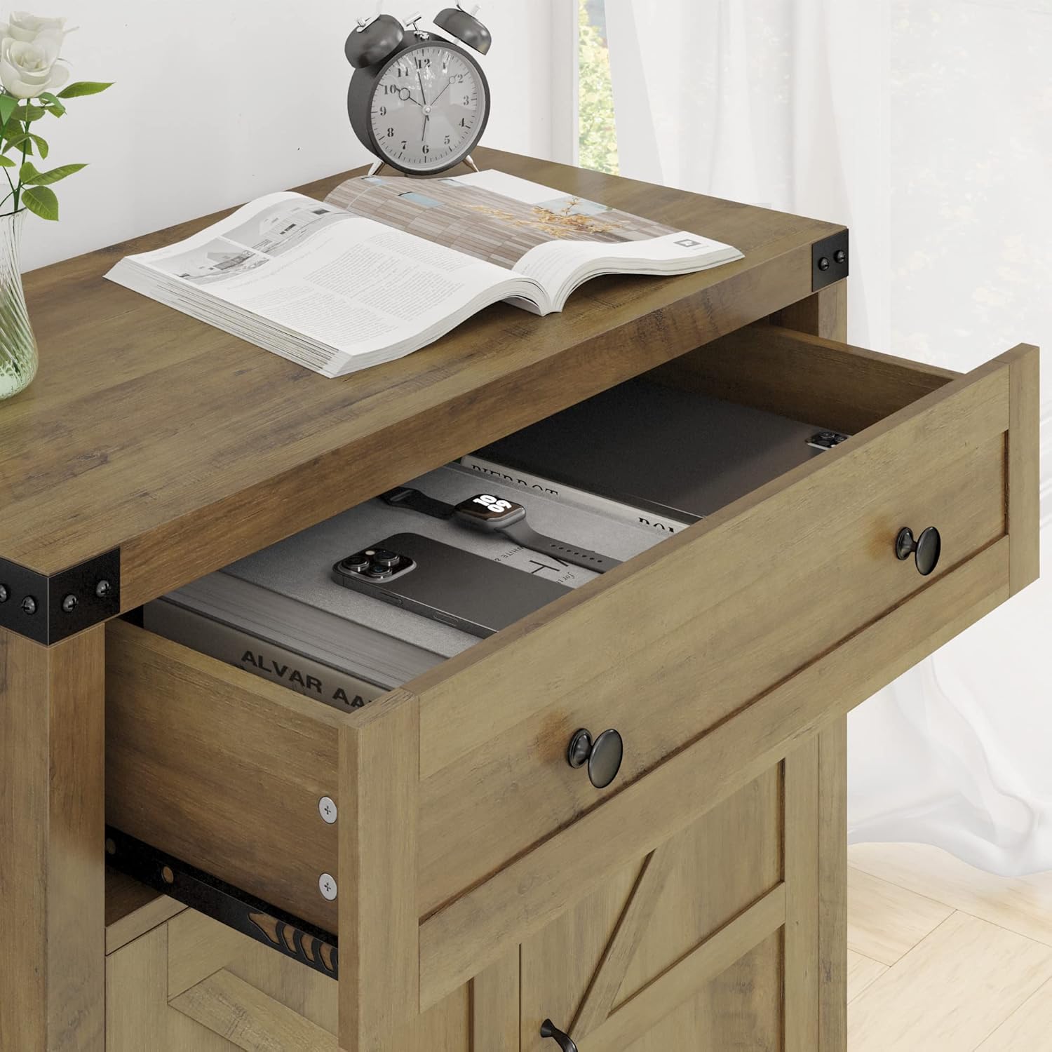 - Special Feature : 2 Barn Doors, Adjustable Shelf, Large Drawer