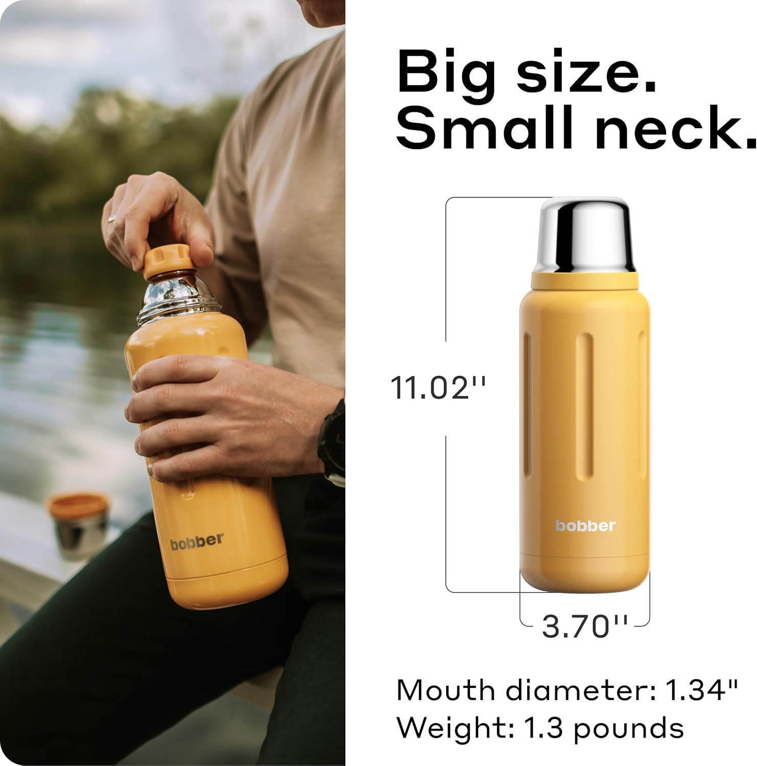 Bobber - 34 oz Vacuum Insulated Stainless Steel Water Bottle with Cup Lid - Dishwasher Safe - Keeps Drinks Hot for 48 Hours and Cold for 72 Hours - Triple Walled Thermo Flask (Ginger Tonic)
