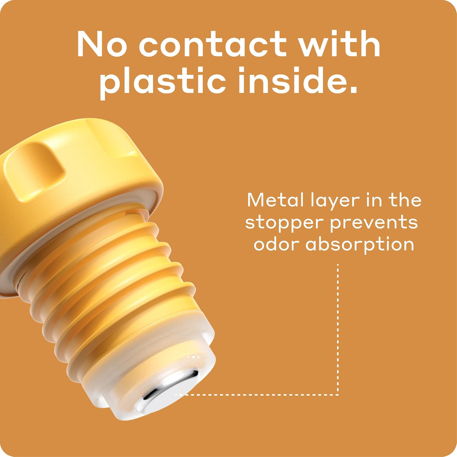 - SAFETY FIRST: 18/8 high grade rust-free stainless steel metal bottle. BPA-free, food-grade steel, food-grade plastic and silicone. Stopper has extra metal layer to prevent odor absorption. Your drink will never touch any plastic