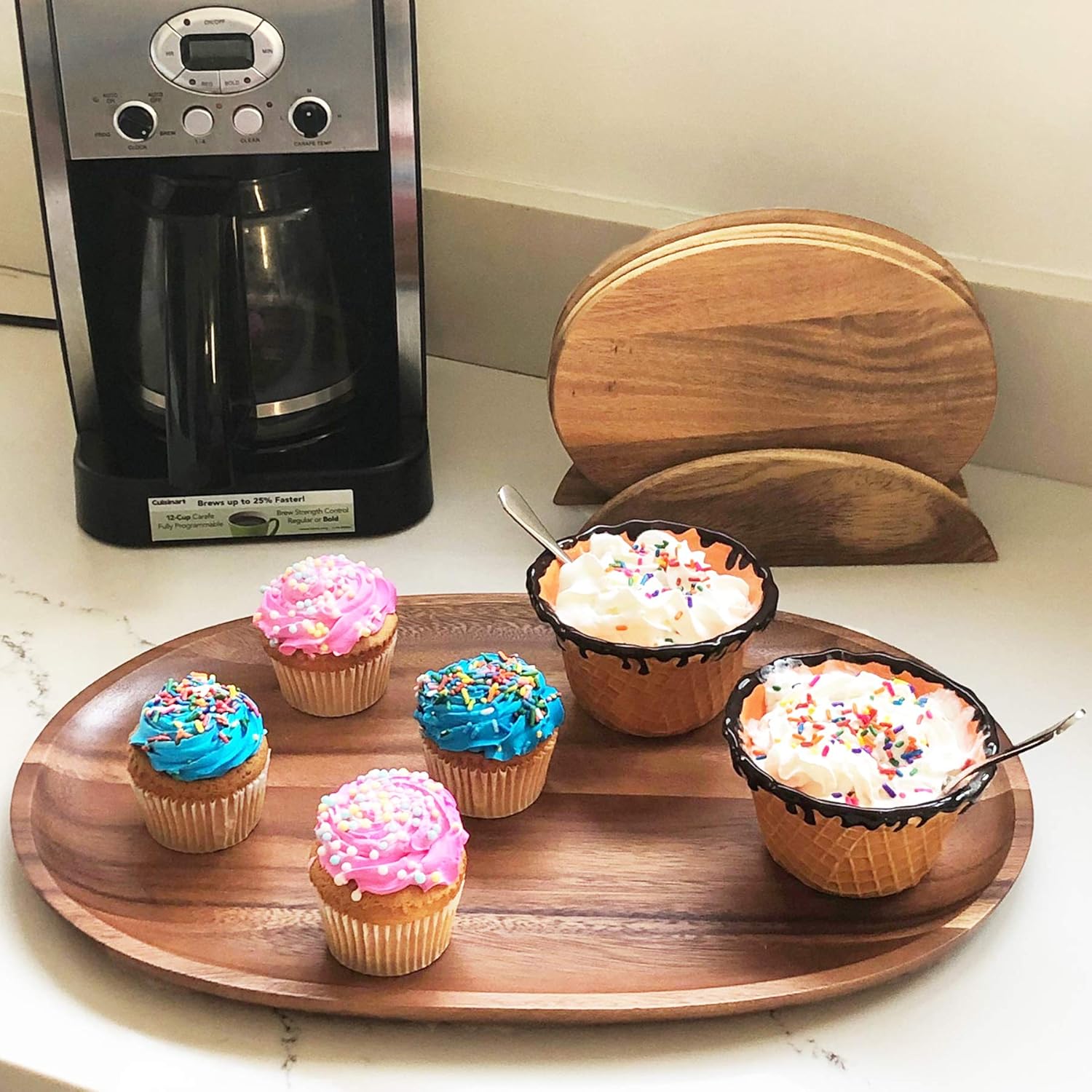 - SIZE: Our extra large oval tray, 12"W x 18"L, Natural Acacia Wood, is perfect for all of your entertaining and serving needs Whether you are having a party at home of if you are a restaurant. Smaller sizes and different finishes are available.