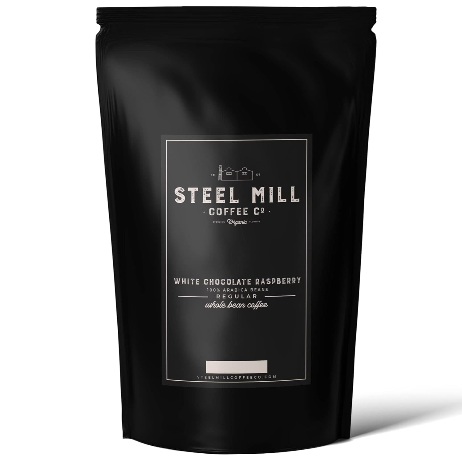 Steel Mill Coffee Co. White Chocolate Raspberry Truffle Flavored Coffee - Ground Coffee, Regular, Medium Roast, 100% Arabica Beans, Vegan, Gluten-Free, Sugar-Free, 12 oz Bag