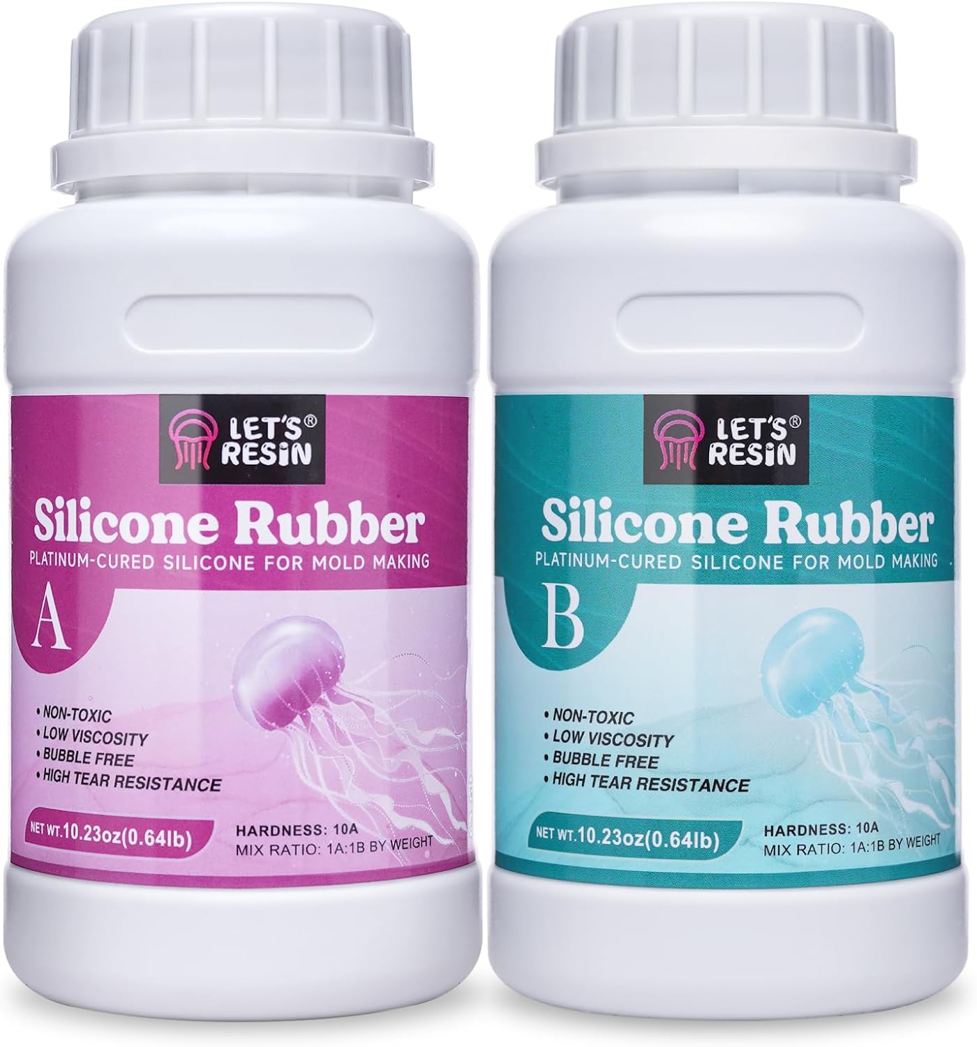 - 【PREMIUM MOLD MAKING SILICONE MATERIAL】: LET'S RESIN 10A silicone mold making kit is a high-performing room-temperature curing (RTV), two-part, platinum-cured silicone rubber, which is a safe & premium silicone material, non-toxic and odorless, exhibits extremely low shrinkage and have long library life. This mold making kit comes with part A and part B,each contains 290g/0.64lb of liquid silicone rubber.