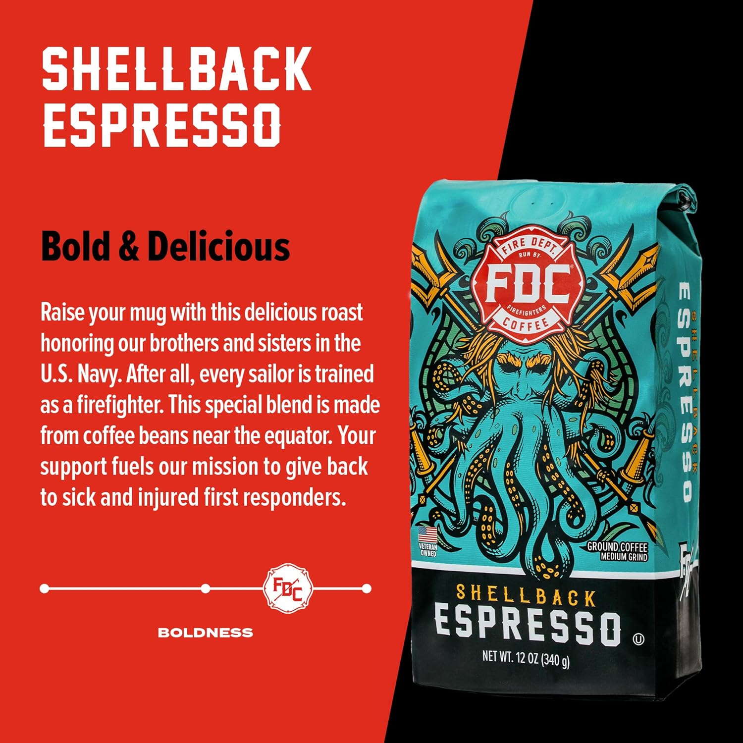 Fire Department Coffee - Gives Back to Firefighters - Bold & Smooth Shellback Espresso Coffee Beans - Roasted in the USA - Veteran Owned - 12 oz
