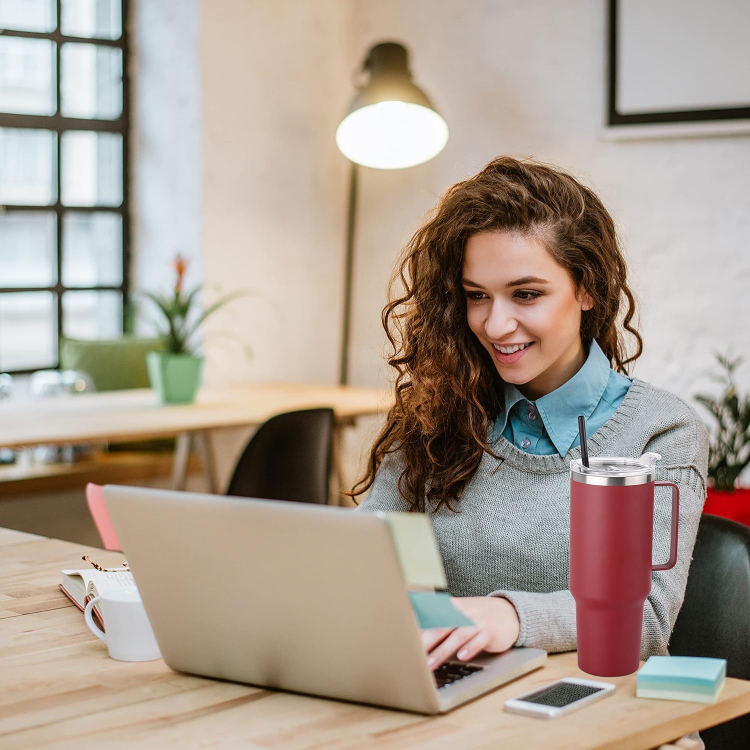 HASLE OUTFITTERS 40 oz Stainless Steel Tumbler with Handle, Vacuum Insulated Tumblers Bulk, Reusable Double Wall Travel Coffee Mug, Durable Powder Coated Water Bottles(Wine Red, 8)