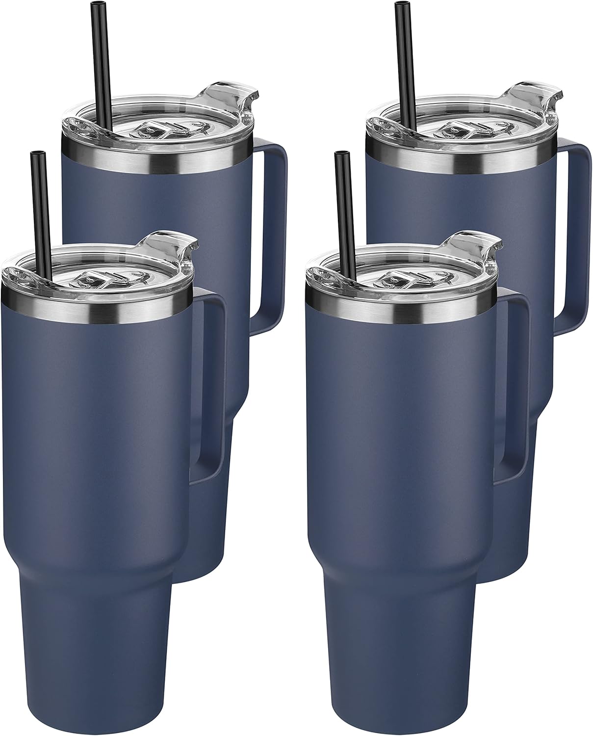 HASLE OUTFITTERS 40 oz Stainless Steel Tumbler with Handle, Vacuum Insulated Tumblers Bulk, Reusable Double Wall Travel Coffee Mug, Durable Powder Coated Water Bottles(Navy, 4)