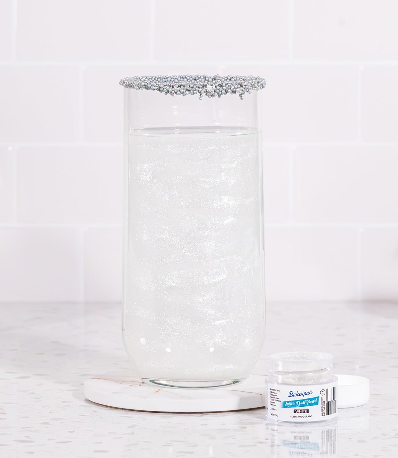 Bakerpan Pearl Luster Dust Edible, White Edible Glitter for Cocktails, 4 Grams Edible Glitter for Cake Decorating, Cookies, Chocolates and Candies, Drinks (Made in USA)