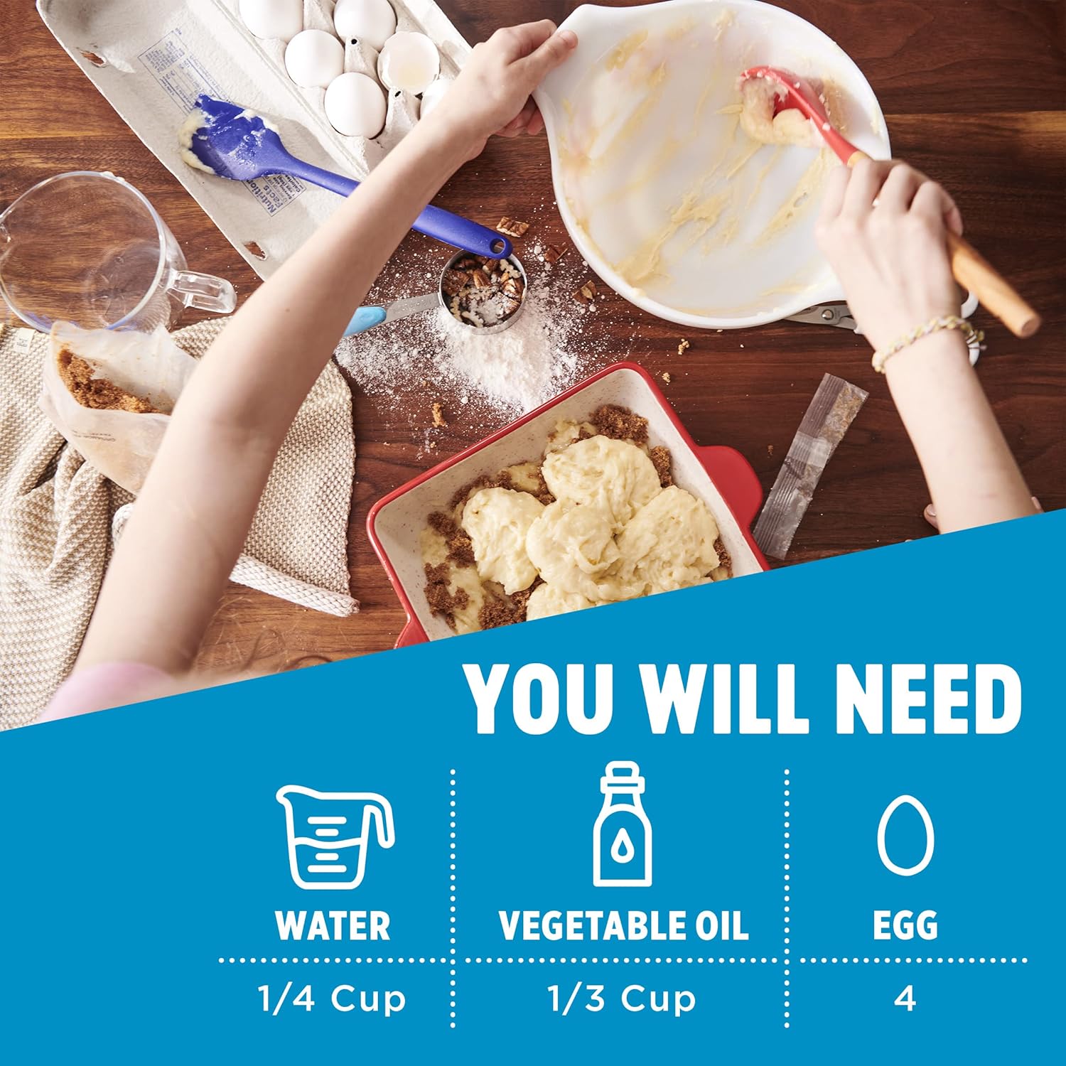- EASY TO MAKE: With just a cup of water, vegetable oil, and eggs, you’ll be enjoying crumbly cinnamon deliciousness before you know it.