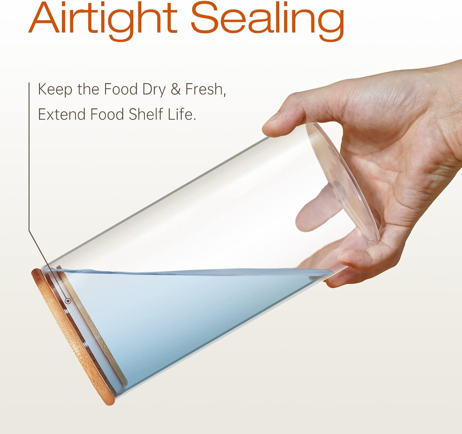 - 【 HD Clear Glass Jar & Boho Decor 】: Special HD glass provide the most transparent texture, makes you can clearly see through the contents of glass storage jars and the remaining stock, then you can convenient to refill the foods that is about to be used up. The natural bamboo lids and HD clear glass canisters is a beautiful boho decor for your kitchen, pantry, bathroom, or bars, etc