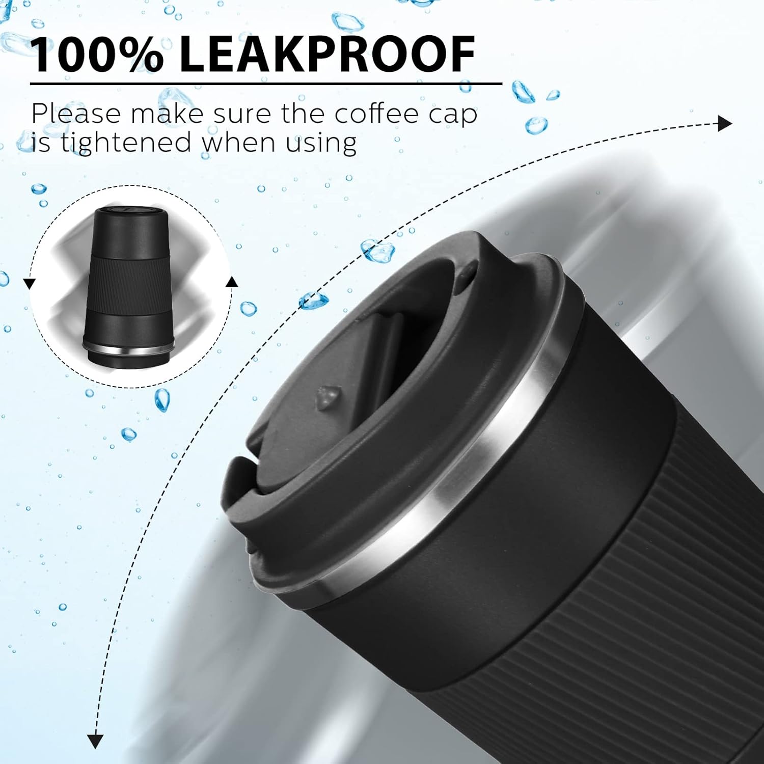 - Leakproof Travel Coffee Cup: the insulated coffee mug with spiral side comes with sealing rings for effective leakproof travel, you can shake the mug as much as you like without worrying about liquid spilling over and wetting your travel or office bag, the travel coffee mug includes a clamshell opening that makes it easy to drink with one hand, whether you're walking or sitting in the car, the size of the spout ensures that you will not get spilled in an emergency