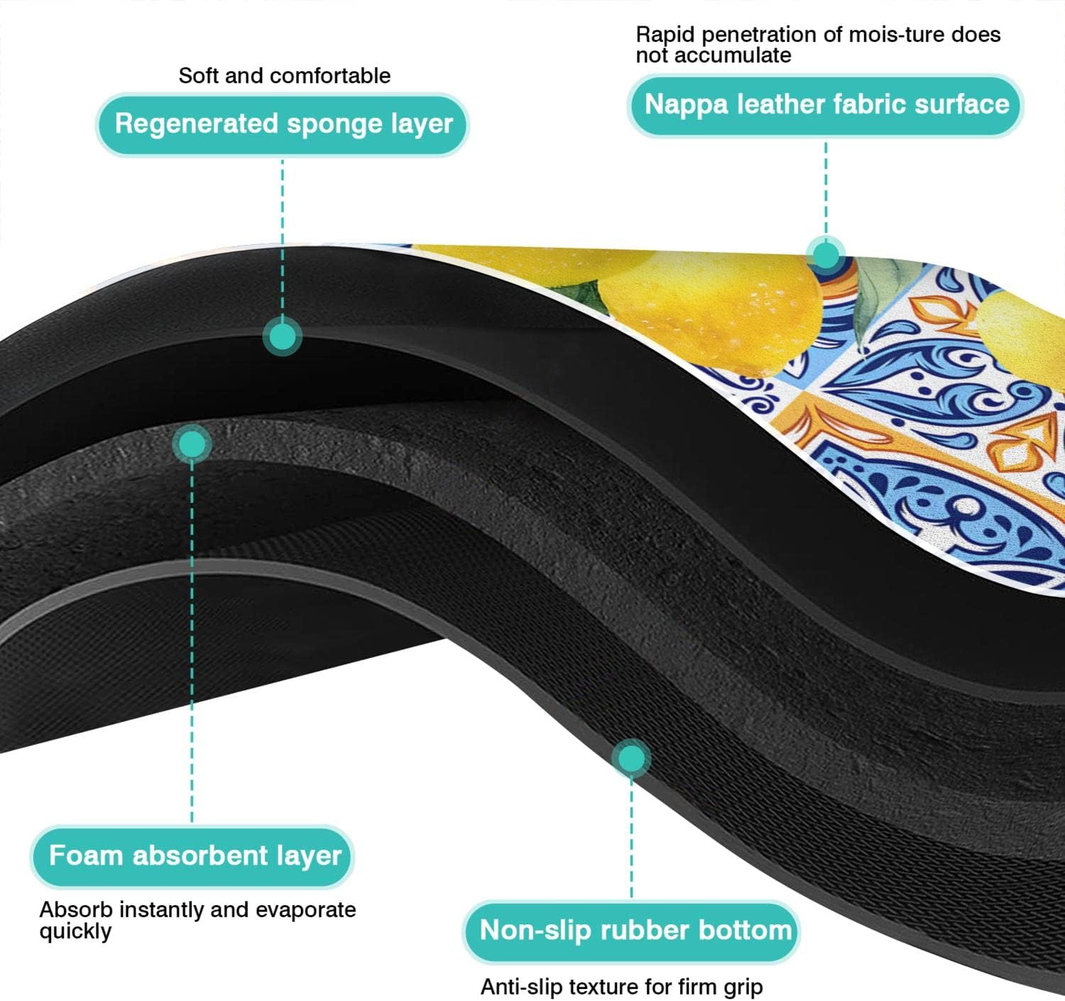 Rubber Dish Drying Mat for Kitchen Counter Large Lemon Washable Quick Home Coffee Pad Fit Under Sink,Bar,Utensils 16x18in