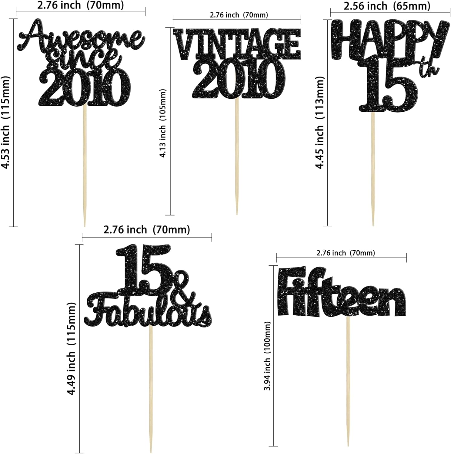 - ♡These glitter 15th birthday Cupcake Toppers are so cute and good for vintage 2008 theme party, 15th birthday party, 15th wedding anniversary birthday party cake decoration. They can make your cupcake more attractive and bring the fun to your party. You can also apply them for ice cream, fruits, cookies and other desserts.