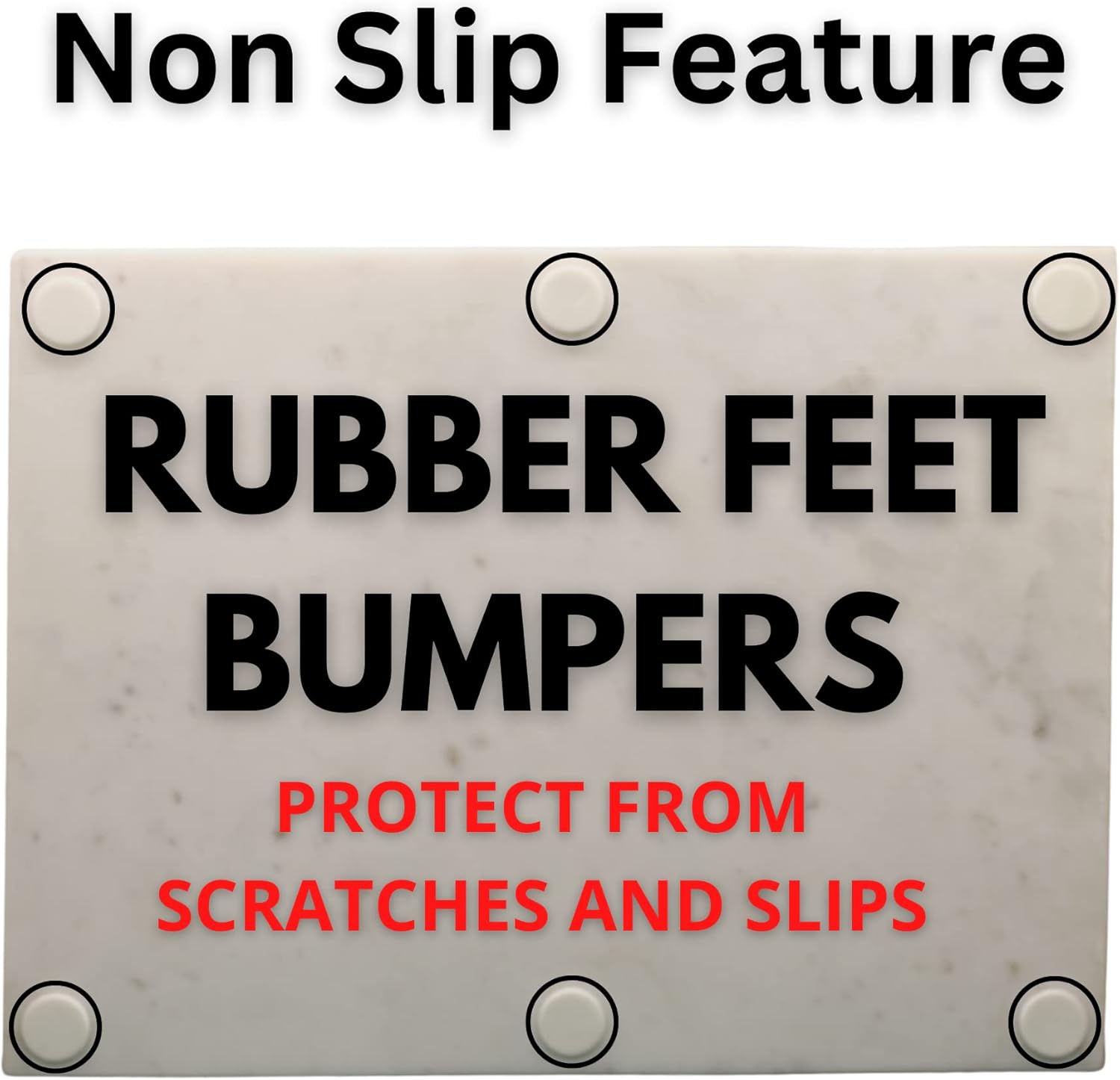 - Non-Slip Rubber Feet – Protects Your Counters Equipped with four rubber feet, the board stays securely in place during prep. These non-slip pads also protect your countertops and tabletops from scratches, keeping surfaces safe and stable — even on smooth kitchen counters.
