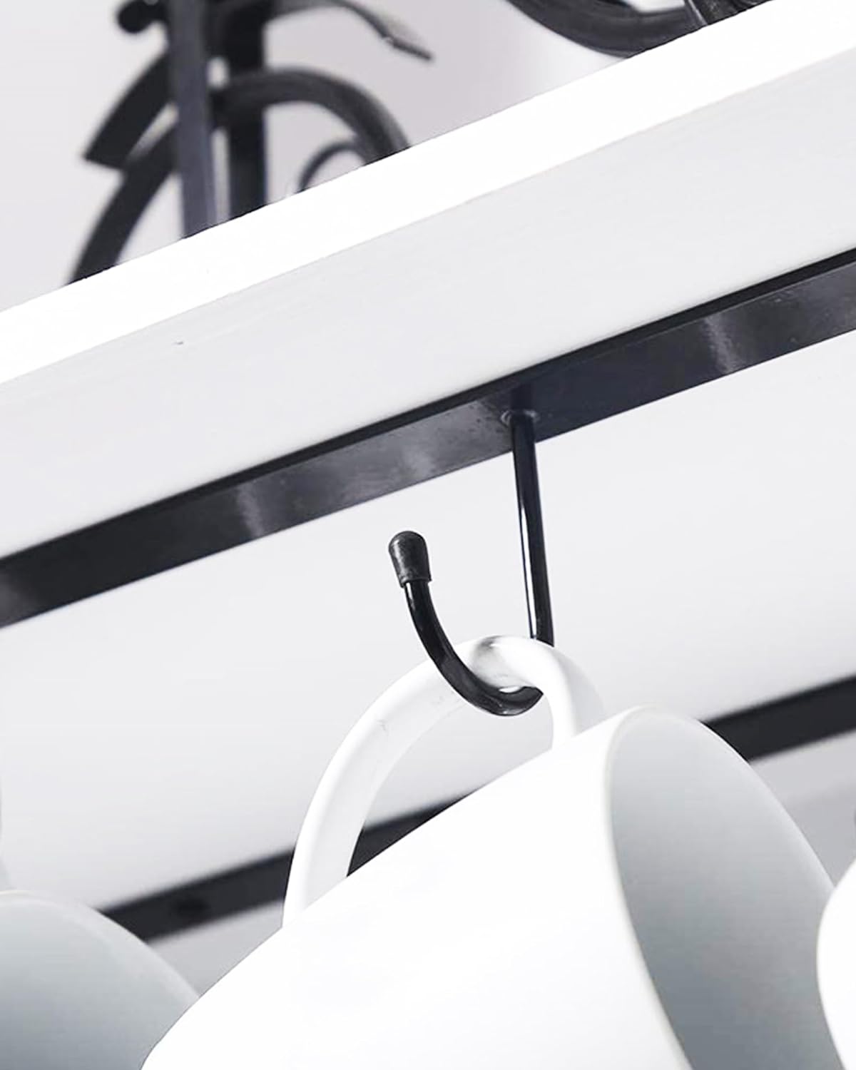 - Easy to Install: The coffee cup holder is equipped with appropriate screws. Just determine the appropriate position and fix the mug hanger hook with screws, then you can use it.