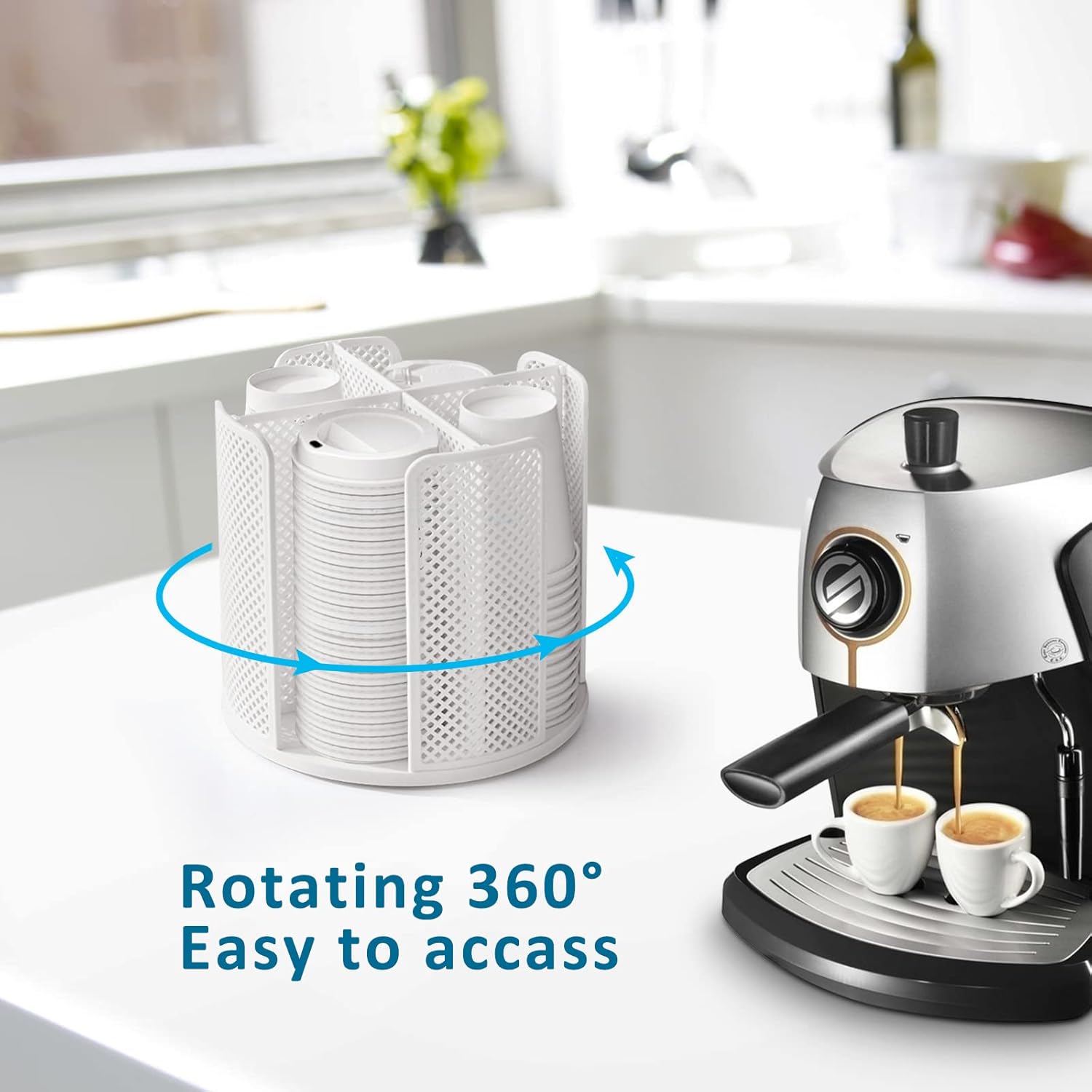 - 【Plastic Coffee cup & lid storage Carousel】 The disposable coffee cup holder is made of PS, does not contain harmful substances, rust-proof. The coffee cup holder has 4 compartments, easy 360° rotation for easy access.