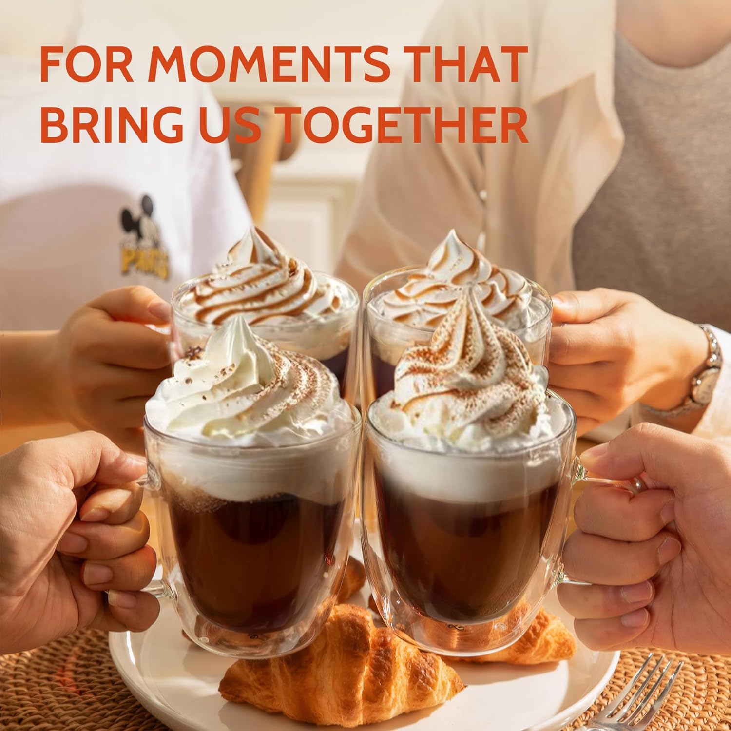 Sweese 12.5oz Borosilicate Glass Coffee Mugs Set of 4 - Double Walled, Clear Cups for Espresso, Latte, Tea