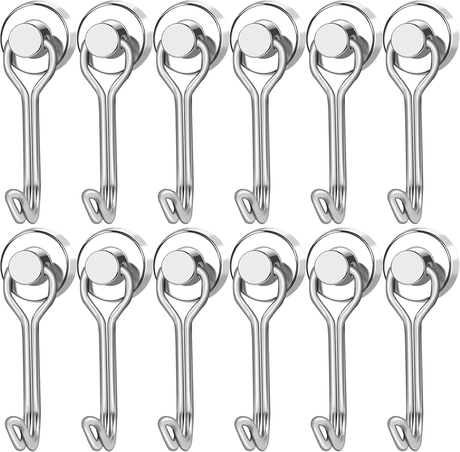 LOVIMAG Hooks, 30lbs+ Magnetic Magnet Hook 2025 Cruise Cabin Ship Essentials Heavy Duty Strong Refrigerator Fridge Hanging for Classroom Beach Vacation Kitchen Grills Home Mug Hanger (12 Pack), Silver