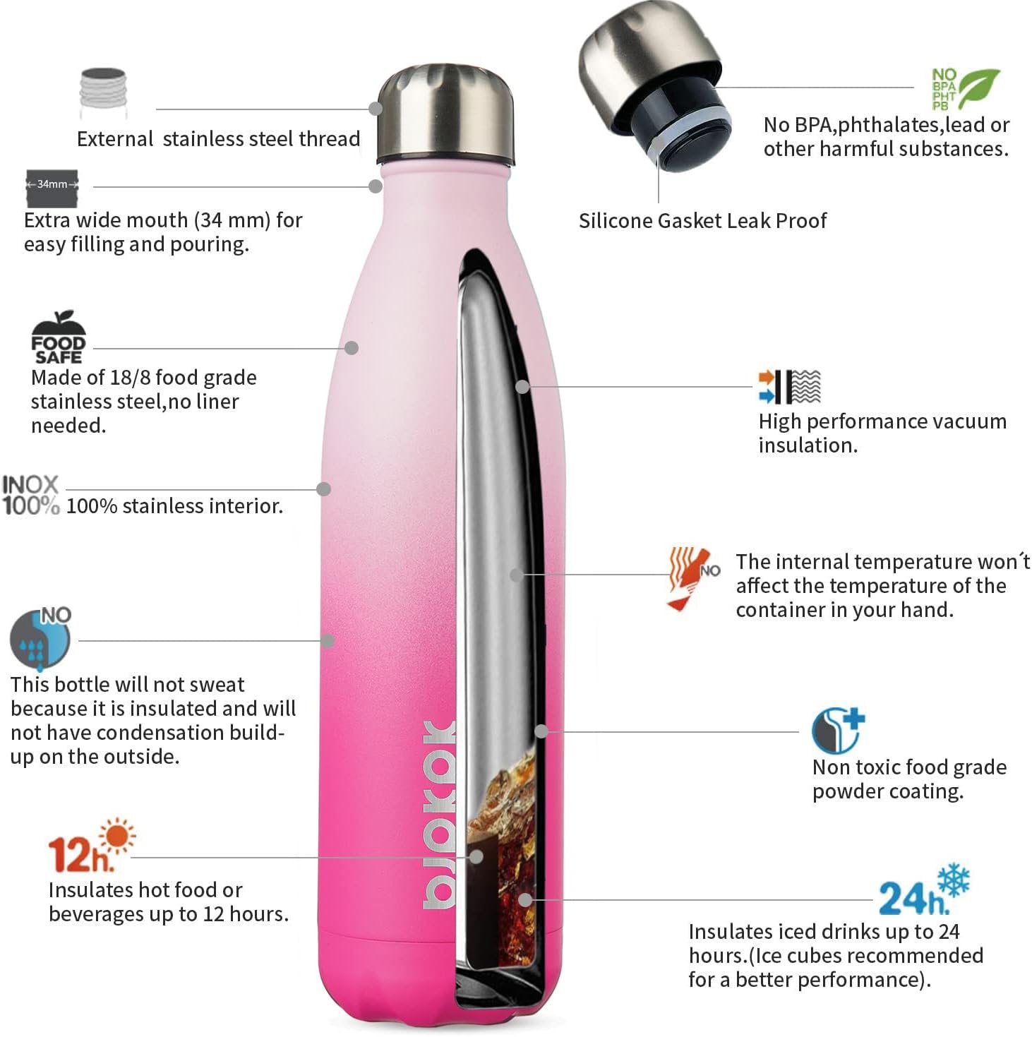 - Keep Drinks Cold & Hot: Adopt double wall vacuum insulation design, keep your drinks ice cold for 24 hours and hot for 12 hours within our highly performed insulated water bottle