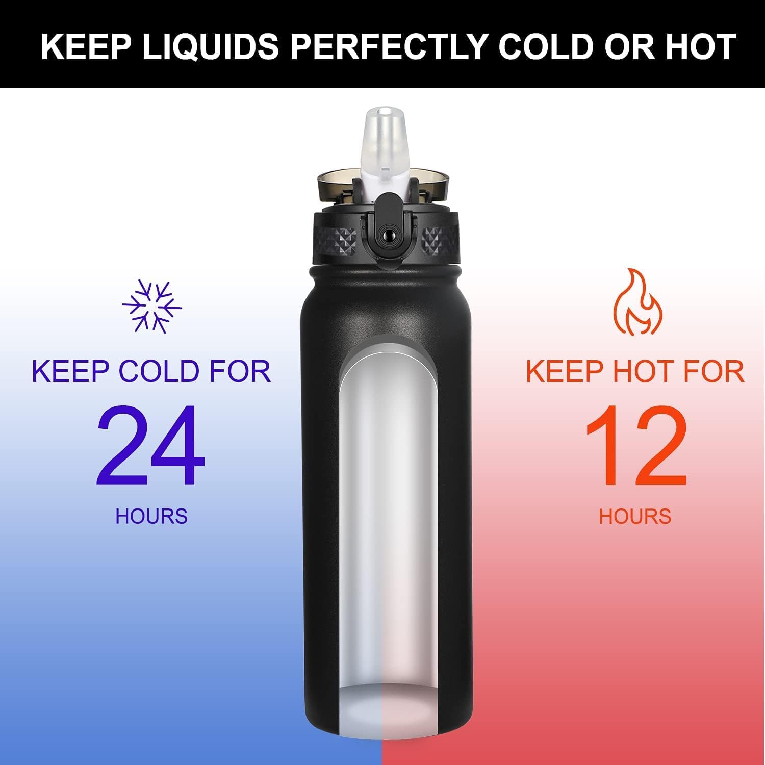 GOPPUS 20oz Insulated Stainless Steel Water Bottle with Straw Lid Reusable Leakproof Water Flask, Keeps Hot and Cold Sports Canteen Water Bottles for Kids Men Women Gym οΌBlack 1 LidοΌ