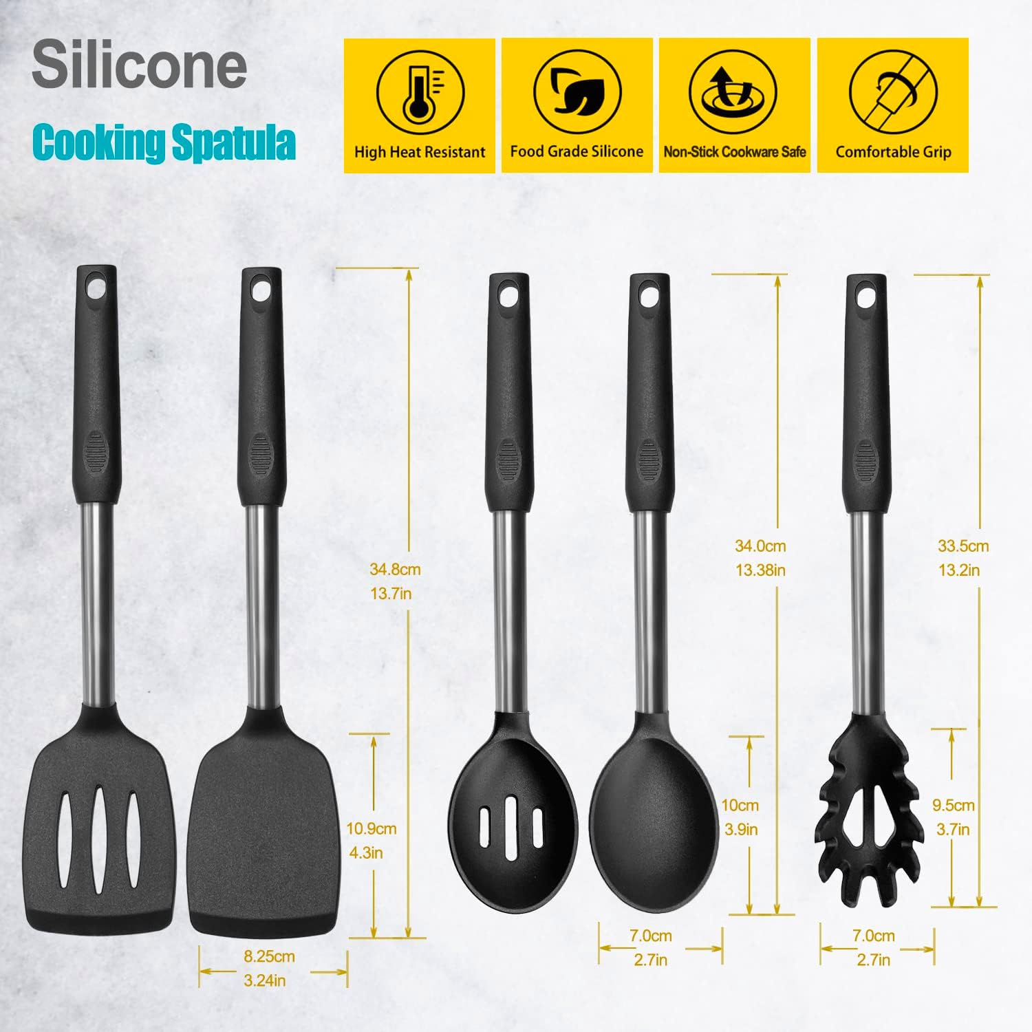 - Lasting Long: This silicone spatula set turners are made of high quality stainless steel, premium silicone with thoughtful design, to avoid blade and handle melting, and the strengthened hook is noway to break as other generics