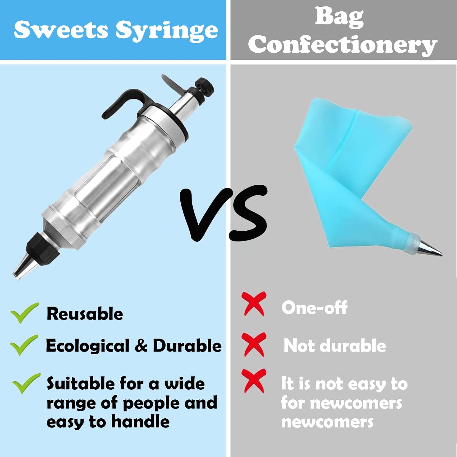 FANTEXY Dessert Decorating Syringe Set, Icing Piping Kit Stainless Steels Cake Decorating Tools 6 Piping Icing Nozzles Cupcake Decorating Kit