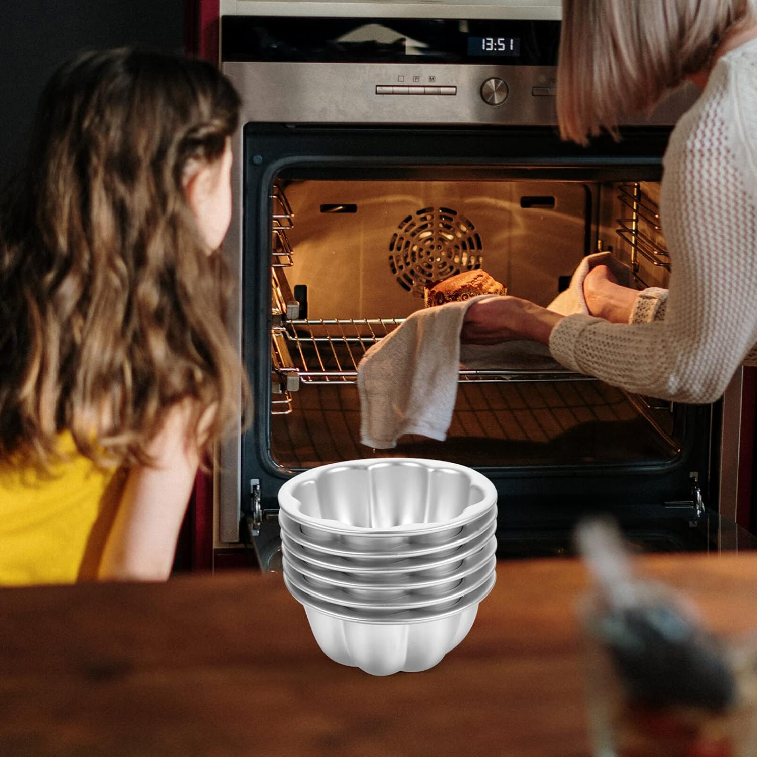 6pcs Egg Tart Molds Muffin Tin Pans Mini Single Cupcake Baking Molds Flower Shaped Aluminum Alloy Pudding Cups for Kitchen Cooking 9.5cm Cake Stencil
