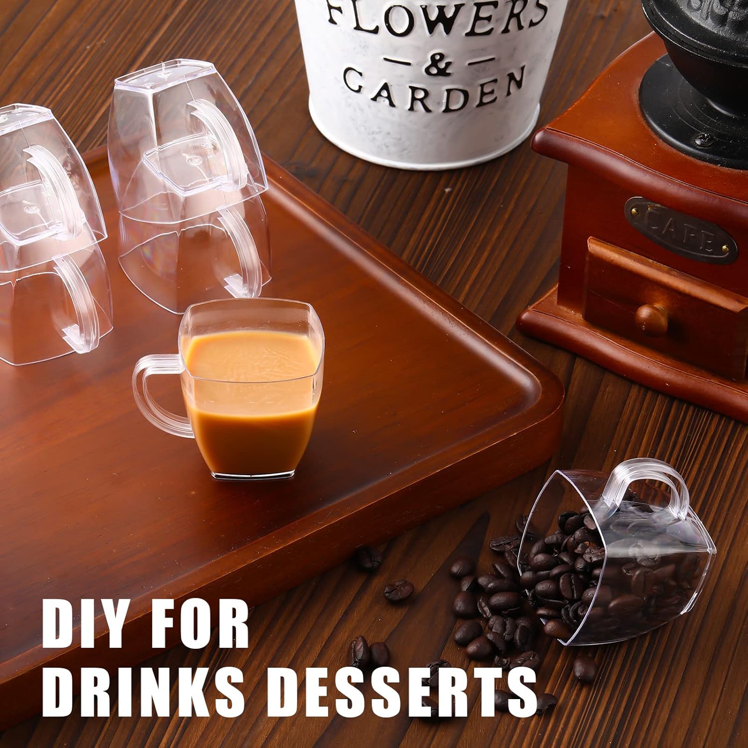 Amyhill 100 Pcs Disposable Tea Cups Mini Plastic Tea Cup Bulk with Handle Hard Plastic Coffee Mug Disposable Square Espresso Mug for Party Catering (Transparent)
