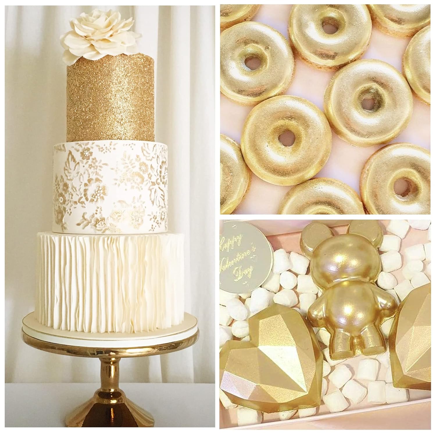 - WIDE APPLICATION - The shimmer luster dusts food coloring powder is ideal for decorating fondant, chewing gum paste, cake, icing, cookie, metallic finish, chocolate and other gourmet baked goods. You can also create shimmery cocktails, champagne or any luxury beverage.