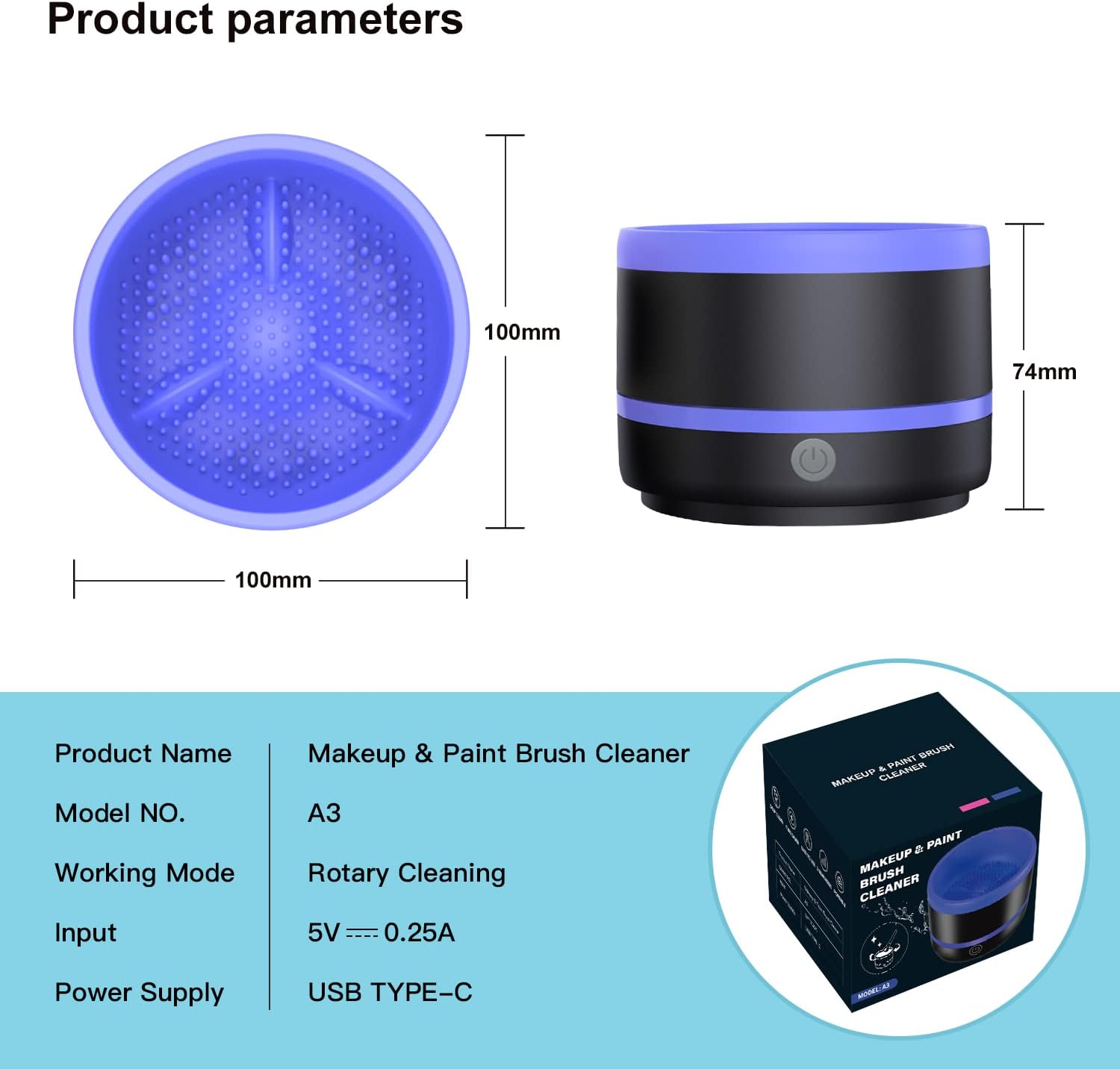 - 1 modes & USB power supply: Unique layout of cleaning heads prevents water or paint drops on the table while drying when the machine is rotating, and will not harm your paint brushes. meet your different cleaning needs for all kindes of brushes.