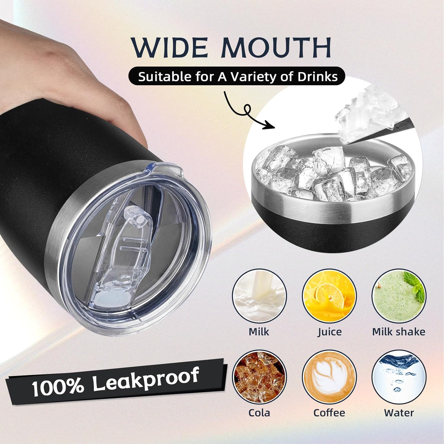 - ✨【Spill-proof Lid】: The lid of the thermos cup is made of unique sealing technology, basically no leakage if you move it at any angle; If the cup is filled with hot water, please open one of the drinking holes first, so that the lid will be easier.