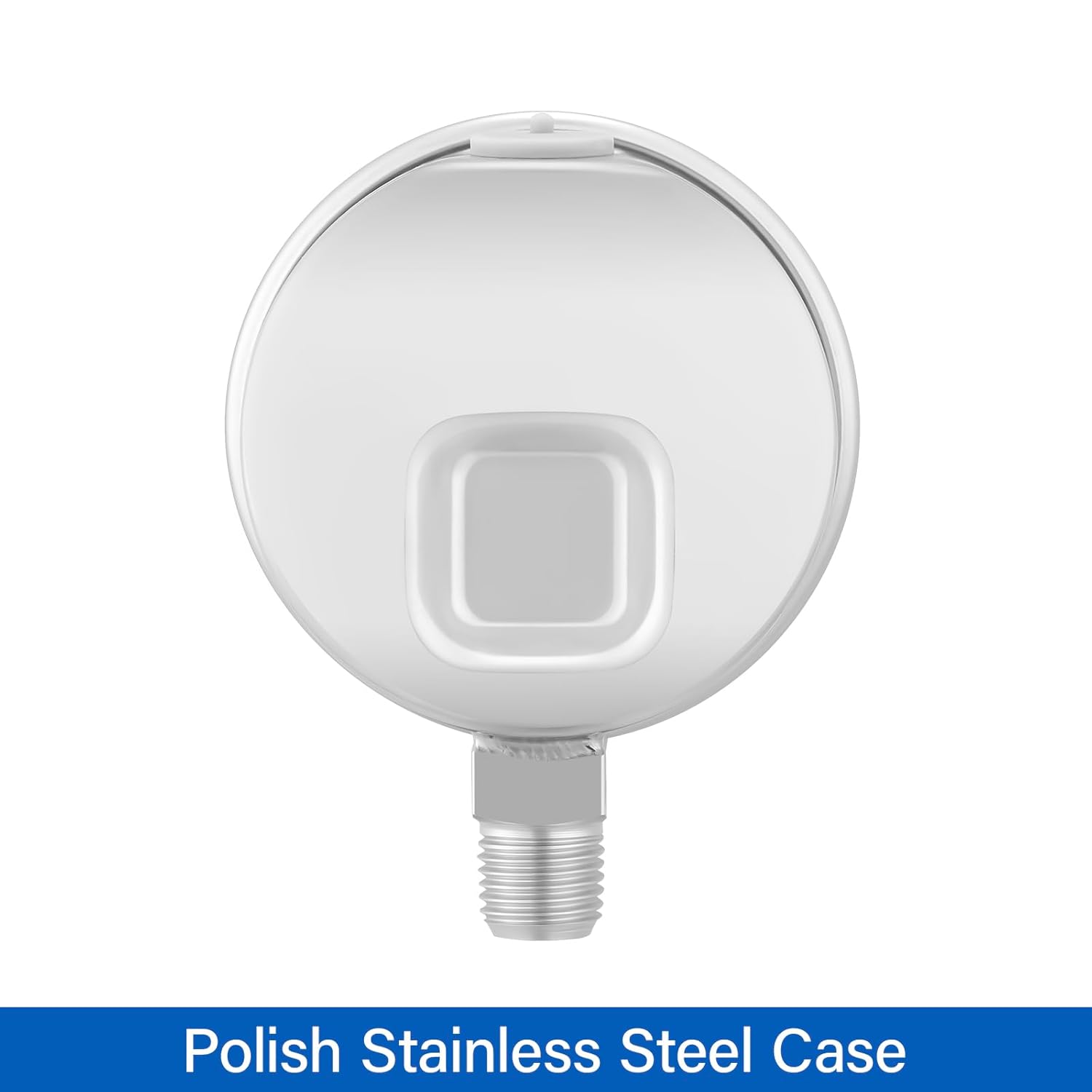 MEASUREMAN Fully Stainless Steel Hydraulic Glycerin Filled Pressure Gauge, 2-1/2" Dial Size, 1/4" NPT Lower Mount, 0-100psi/kpa